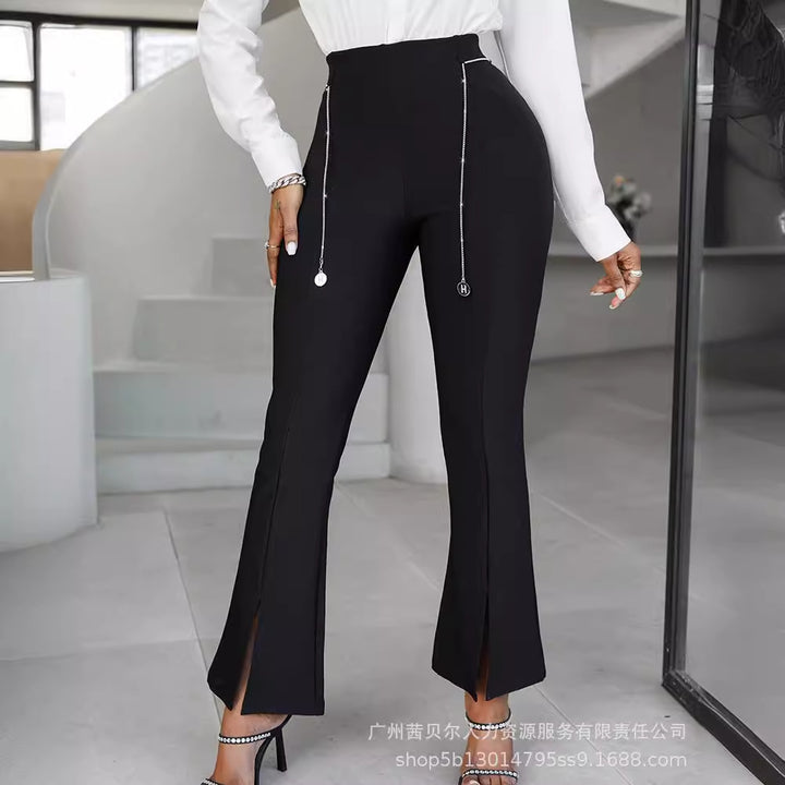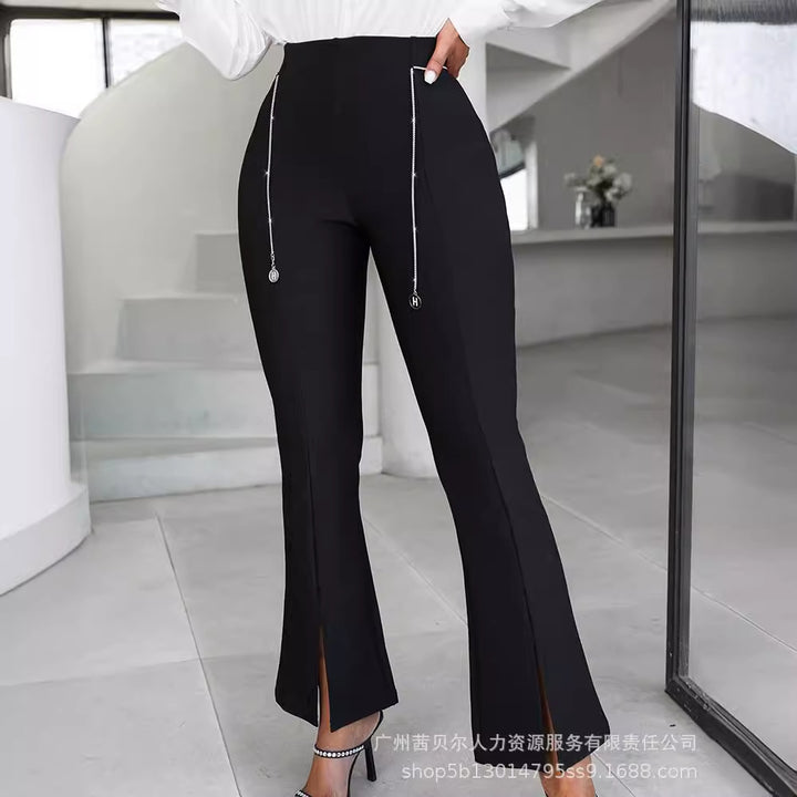 WMQY0007 Europe and America 2024 women's clothing chain decorative foot slit trousers