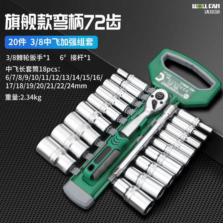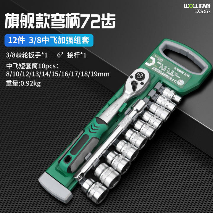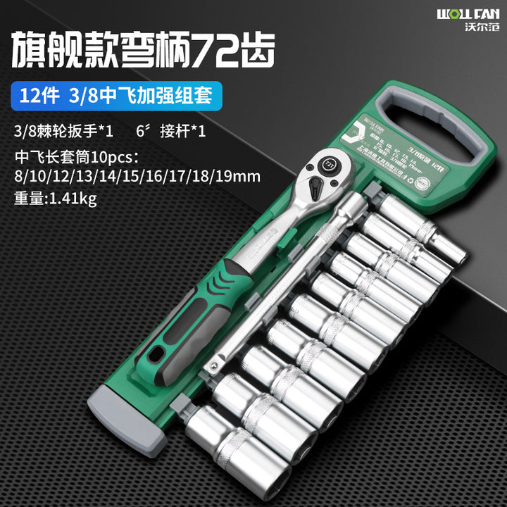 1/4 Xiaofei short sleeve 12-piece set [72 teeth], 1/4 Xiaofei extended sleeve 12-piece set [72 teeth], 3/8 Zhongfei short sleeve 12-piece set [72 teeth], 3/8 Zhongfei extended sleeve 12-piece set [72 teeth], 3/8 Zhongfei short sleeve 20-piece set [72 teeth], 3/8 Zhongfei extended sleeve 20-piece set [72 teeth], 1/2 Dafei short sleeve 12-piece set [72 teeth], 1/2 Dafei short sleeve 20-piece set [72 teeth] |