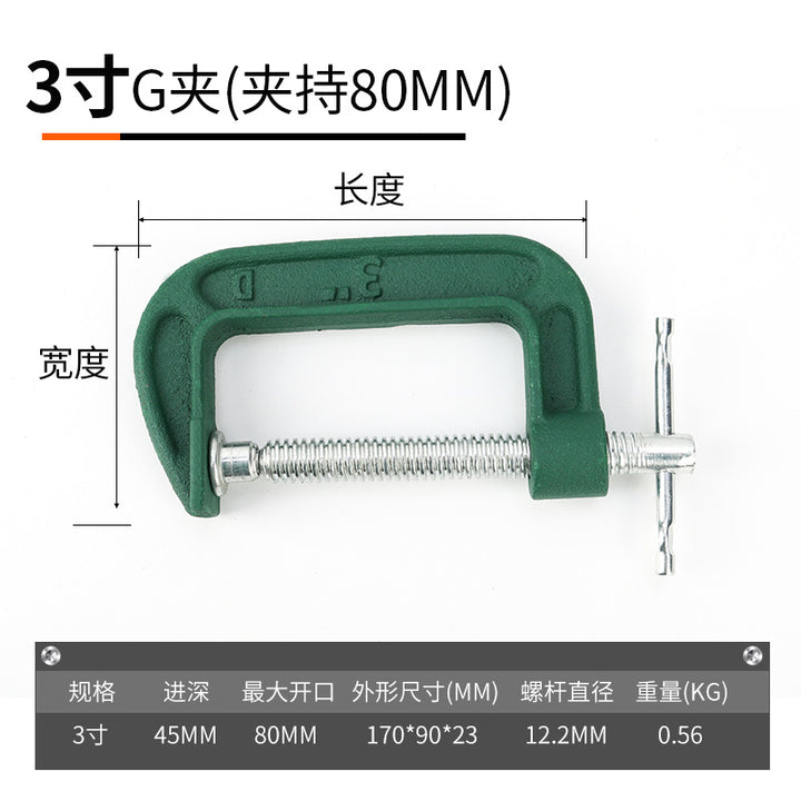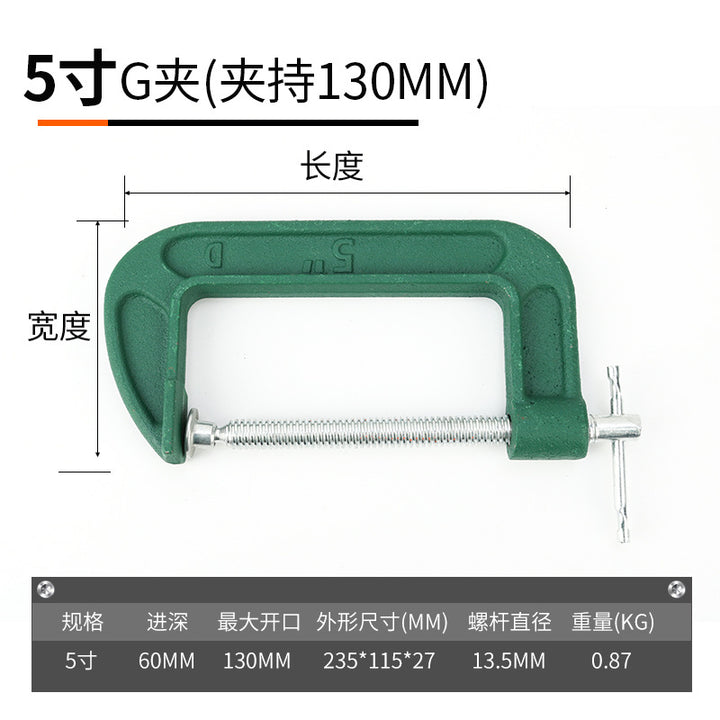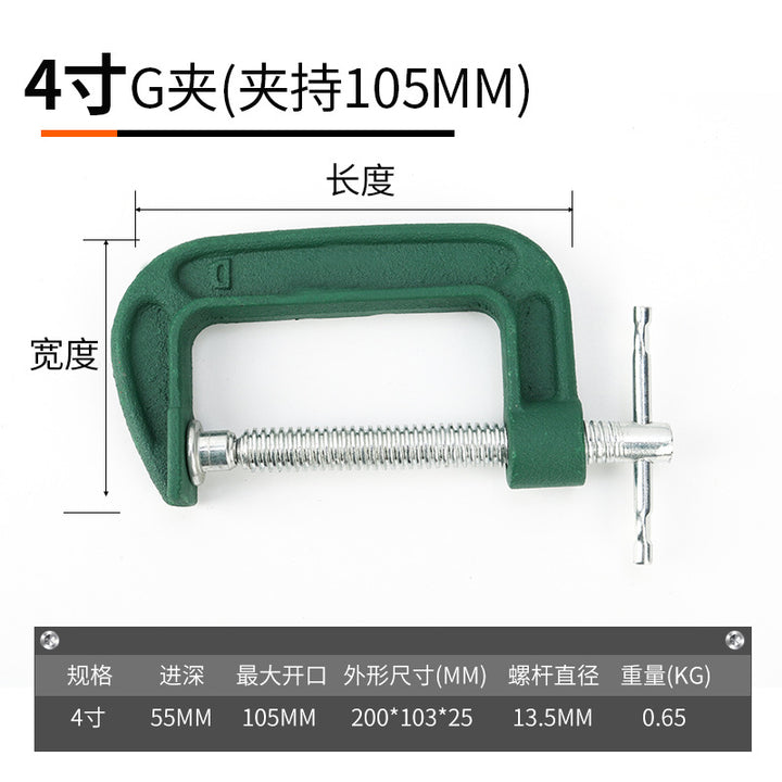 2 inch G-type clip [clamping 55mm] a box of 150., 3 inch G-type clip [clamping 80mm] a box of 60, 4 inch G-type clip [clamping 105mm] a box of 50, 5 inch G-type clip [clamping 130mm] a box of 30, 6 inch G-type clip [clamping 160mm] a box of 30, 8寸G型夹【夹持210mm】一箱20 |