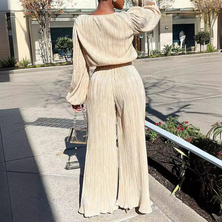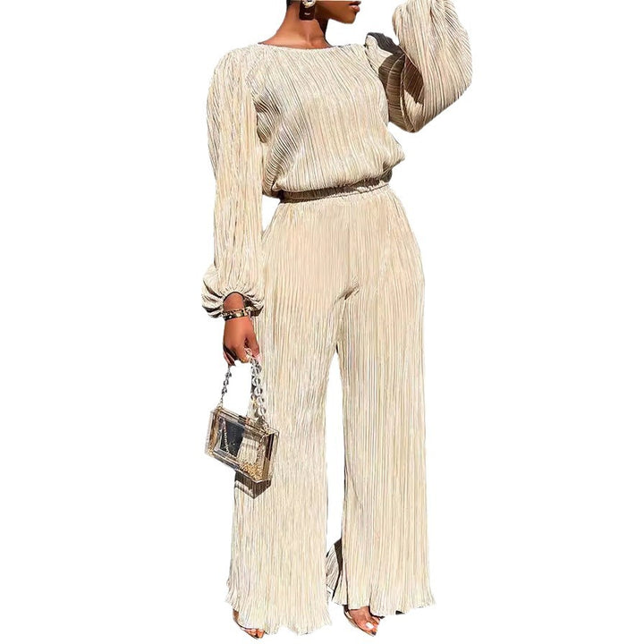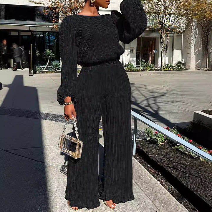 Women 2024 Spring New Home Solid Color Atmospheric Loose Casual Long Sleeve High Elastic Pleated Two-piece Set