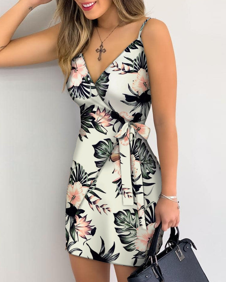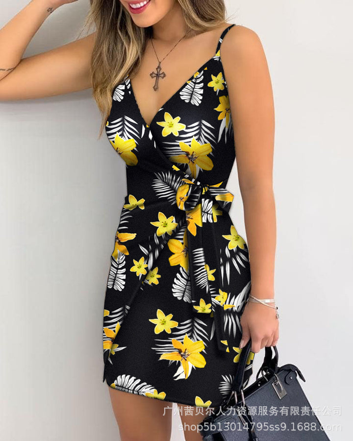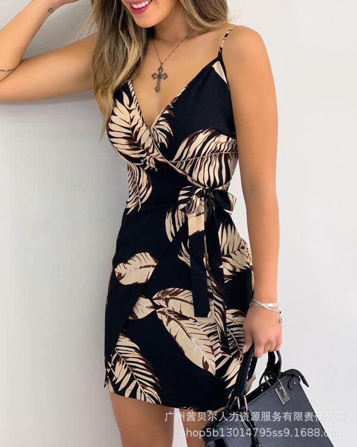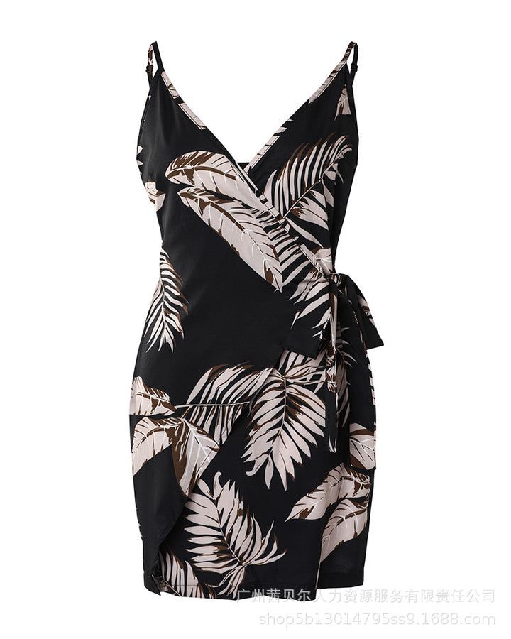 Women's 2022 new new suspender V-neck printed dress-non-positioning printing-LZQ0526 series