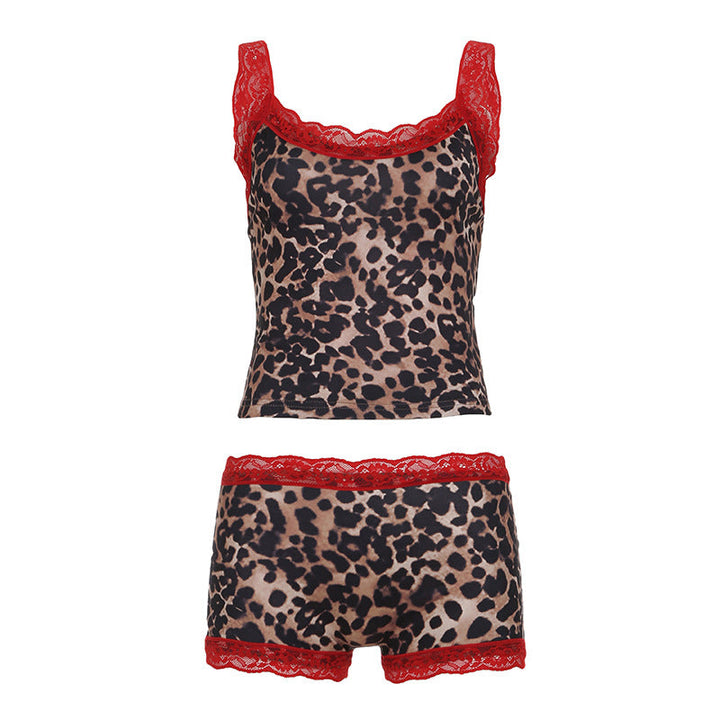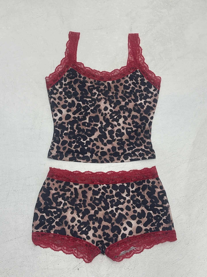 Women's 2025 New Leopard Print Sexy Lace Suspender Top Shorts Set Pajamas Loungewear