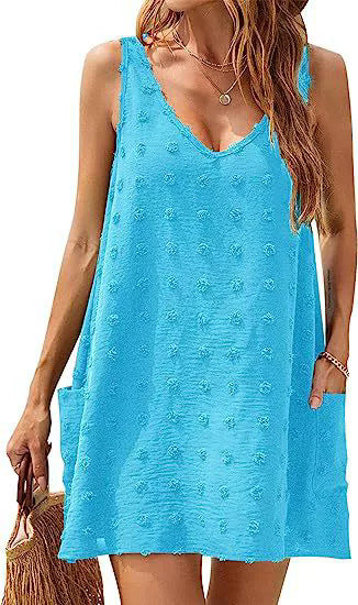 Women's Casual Summer Small Suspender Seaside Beach Blouse V Loose Vest Suspender with Pocket