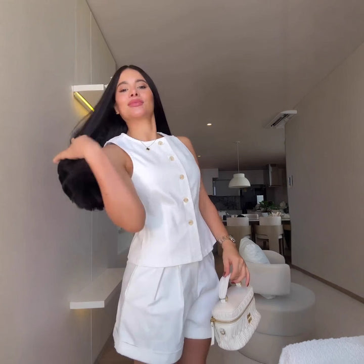 Women's clothing 2025 European and American new fashion slim-fitting sleeveless small vest top high waist shorts two-piece set