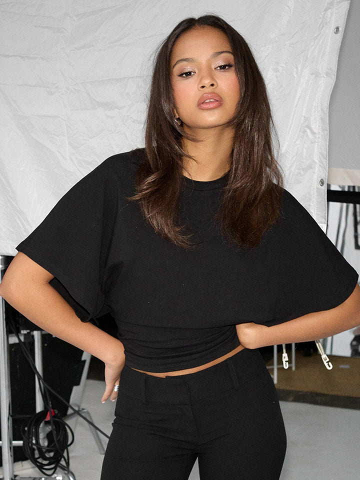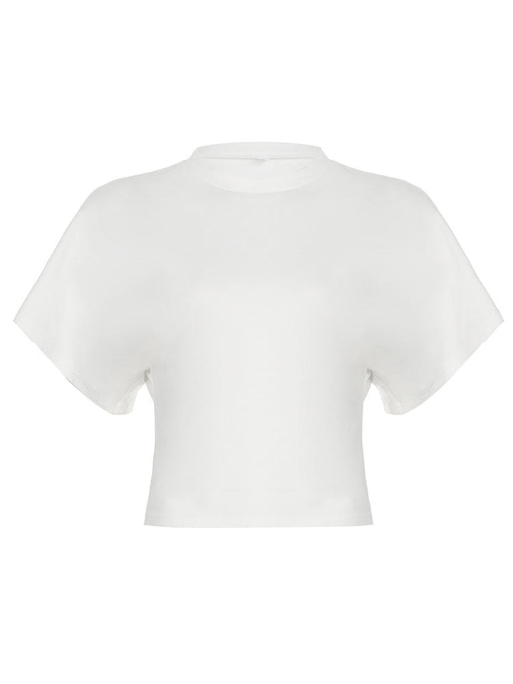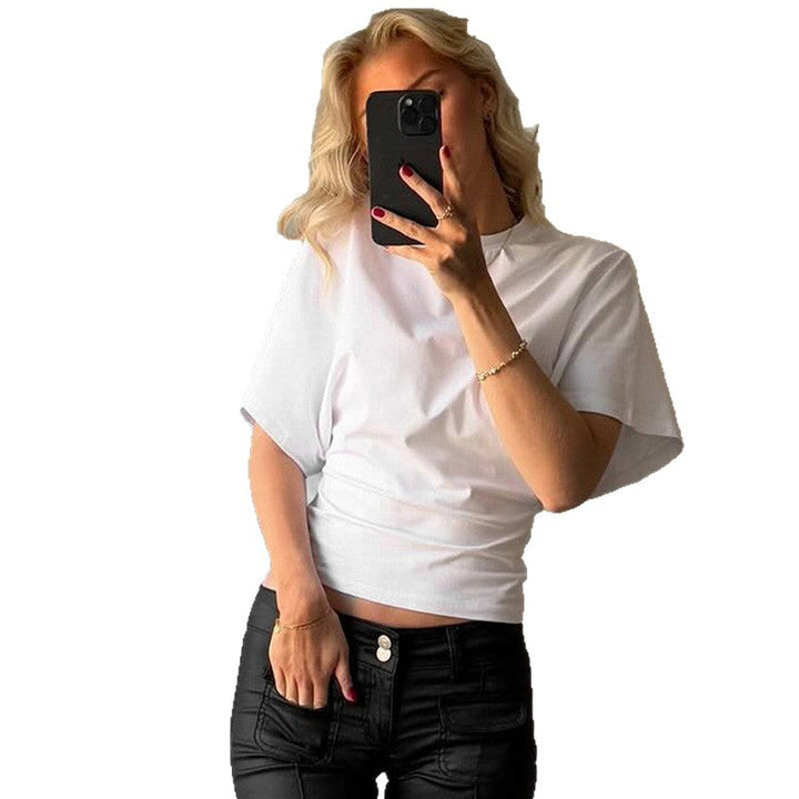 women's clothing commuting solid color simple waist pinch short-sleeved top pure cotton round...