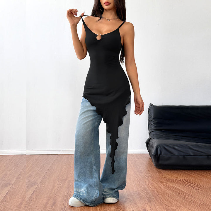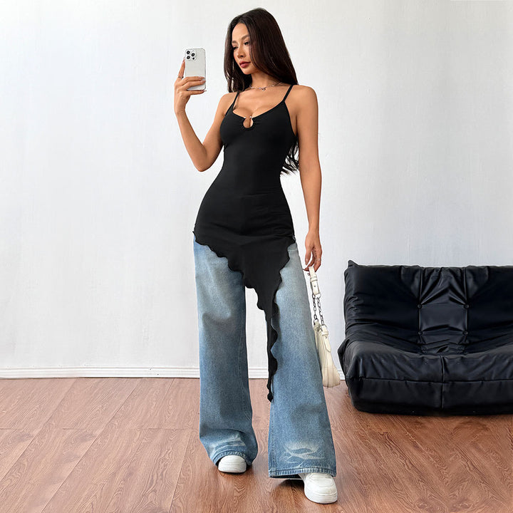 women's clothing sexy irregular hem T-shirt 2025 spring and summer new slim-fit suspender top
