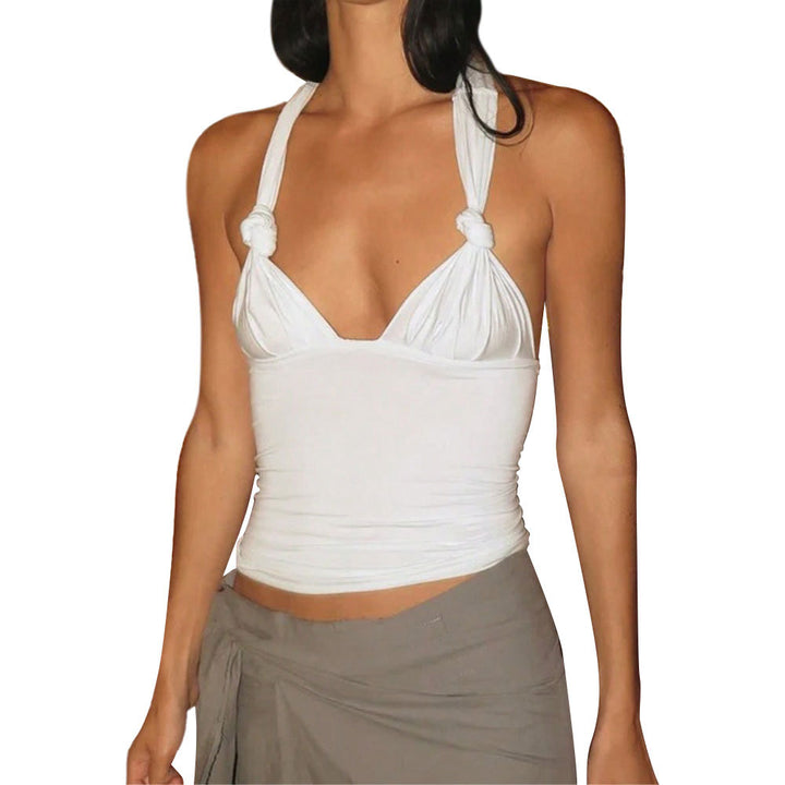 women's clothing sexy kink suspender T-shirt 2025 spring and summer new short backless neck top