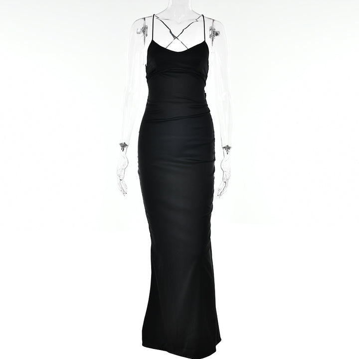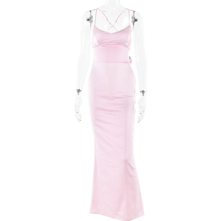 women's clothing sexy suspender satin dress autumn new fashion halter strap waist dress