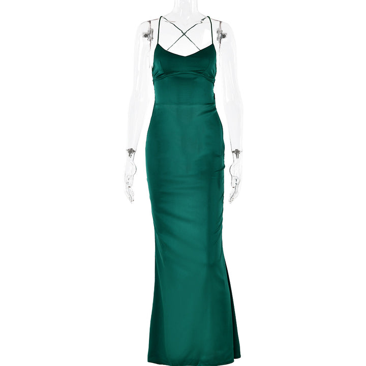 women's clothing sexy suspender satin dress autumn new fashion halter strap waist dress