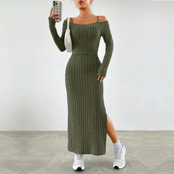 women's clothing simple and elegant fashion suit autumn and winter commuter style suspender dress two-piece set