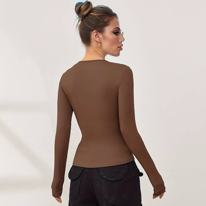 women's clothing simple and versatile T-shirt autumn and winter casual commute with long-sleeved slim-fit solid-color top