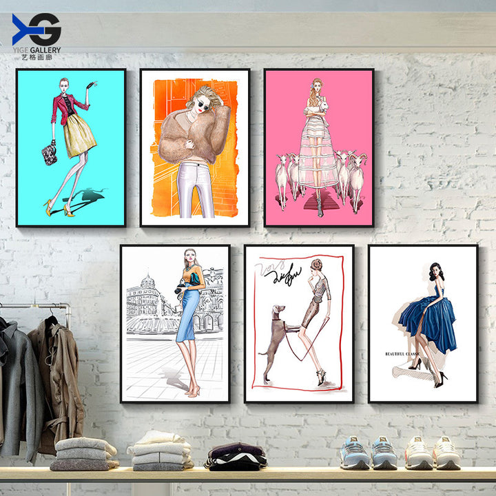 Women's clothing store hanging paintings Clothing store wall decoration paintings Cloakroom f...