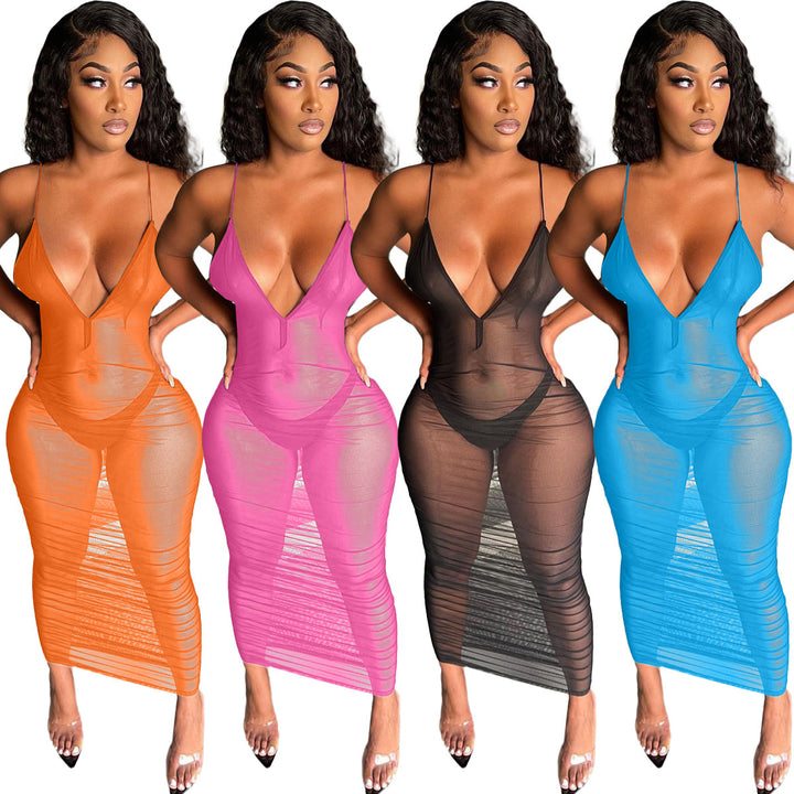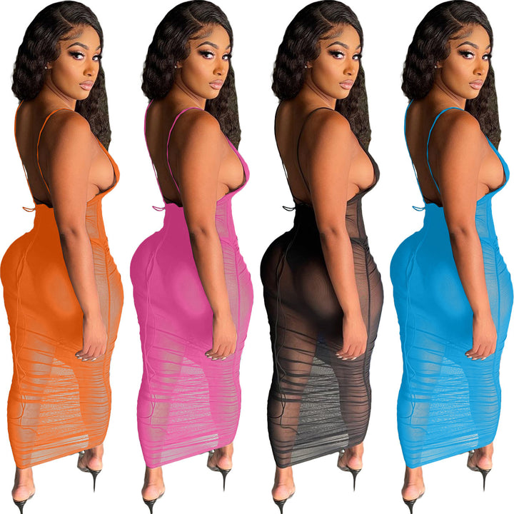 women's clothing wish independent station Europe and the United States sexy mesh perspective hollow slim dress
