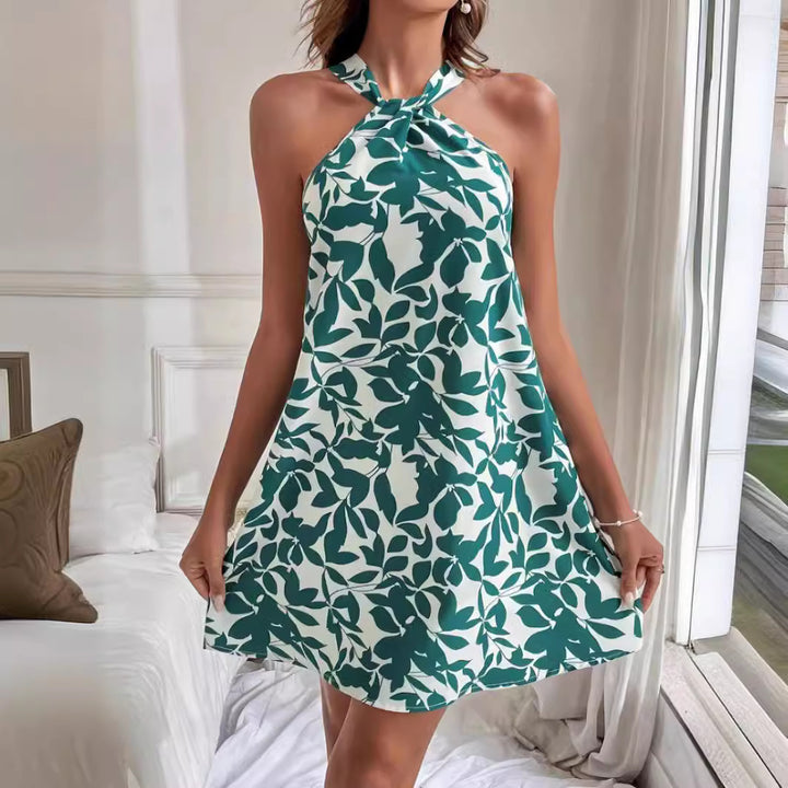 Women's dress independent station wish 2024 new women's clothing neck print sleeveless skirt