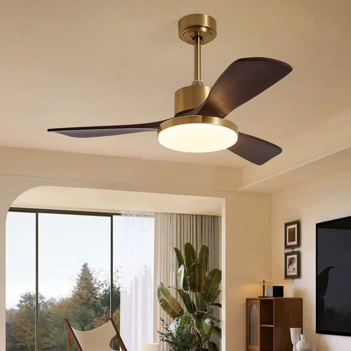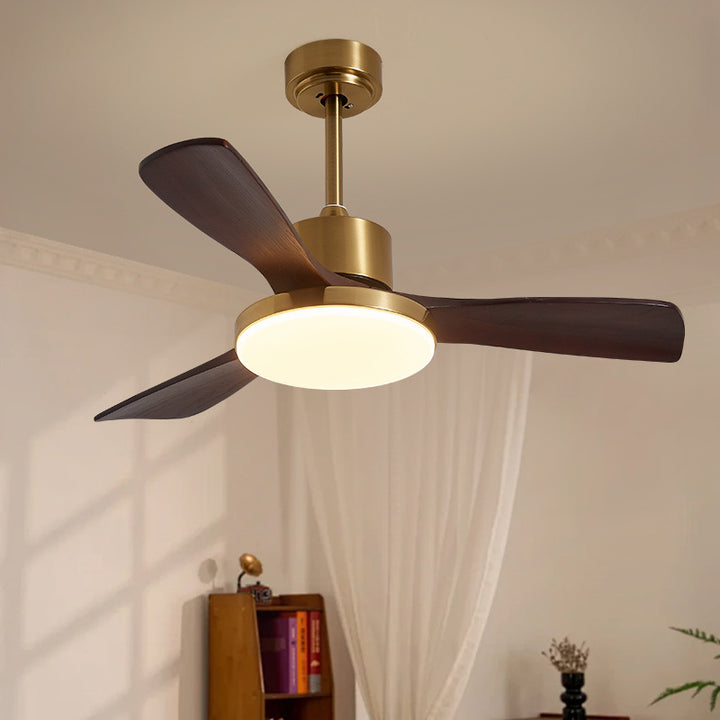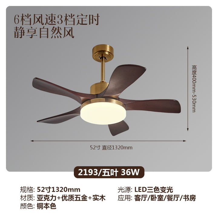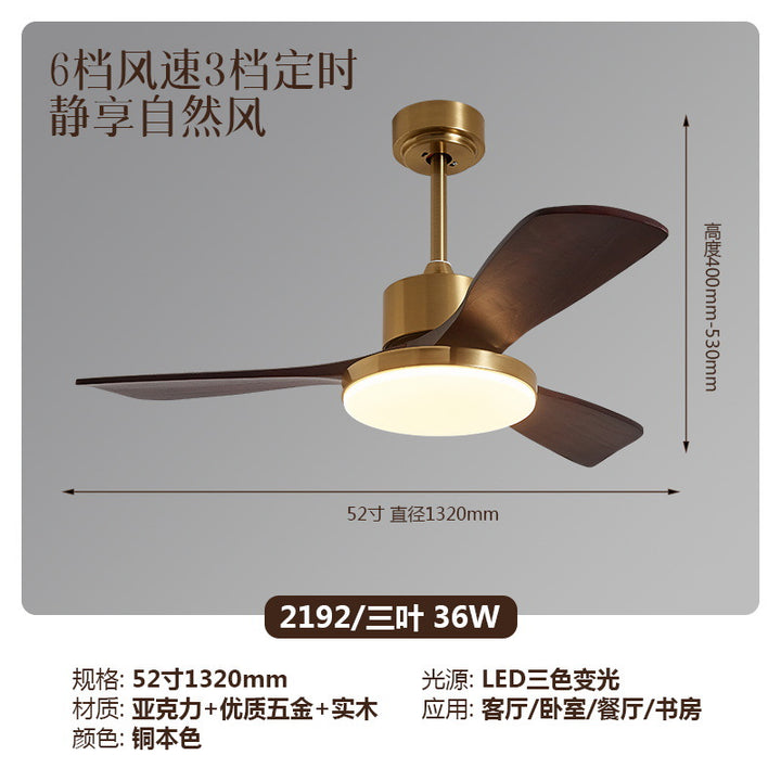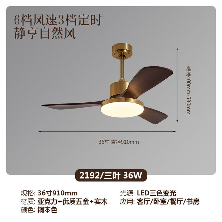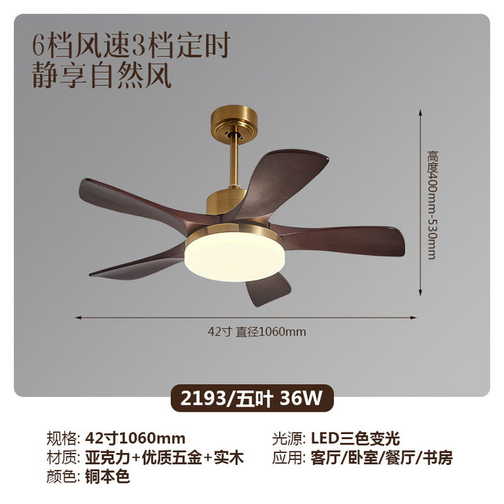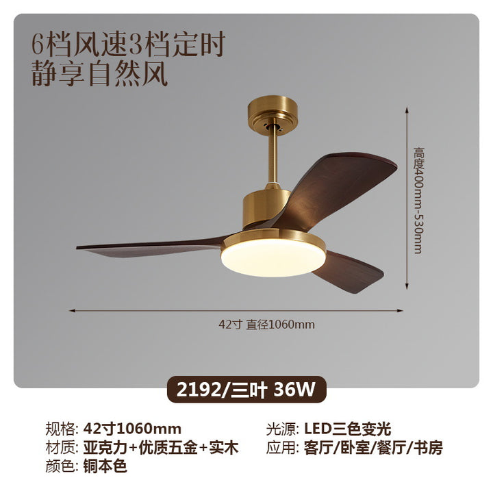 Wood grain color French medieval style 2025 new living room bedroom dining room fan light full spectrum silent eye protection ceiling fan