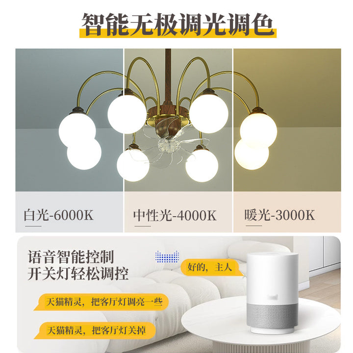 [Wow] Ceiling fan light American retro magic bean chandelier medium antique retro walnut patt...