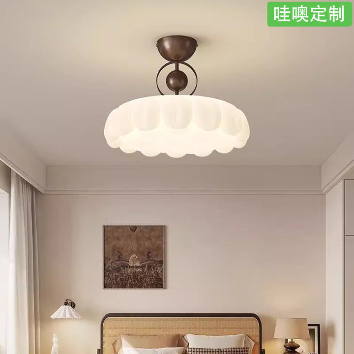 [Wow] French medieval ceiling light retro walnut pattern flower cream wind room light 2025 new