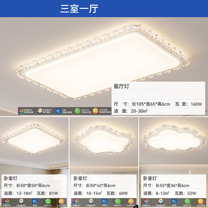 White One Room One Living Room Package, White two bedrooms and one living room package, White two bedrooms and two living rooms package, White three bedrooms and one living room package, White three bedrooms and two living rooms package, White four bedrooms and two living rooms package, White rectangular living room light 105 * 65cm, White cloud-shaped bedroom light 55 * 36cm, White auspicious cloud bedroom light 50 * 42cm, White square bedroom light 50cm |