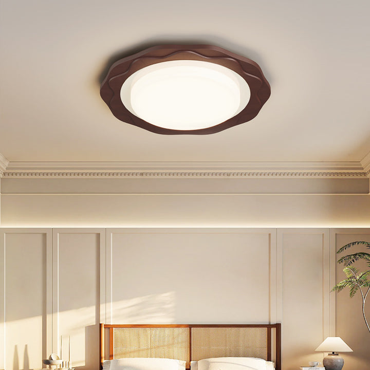 Walnut round bedroom light 500mm