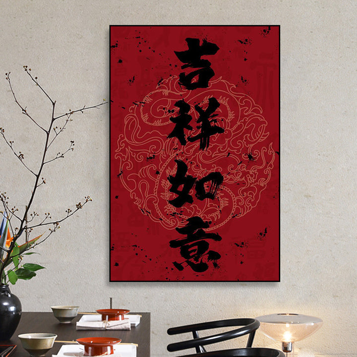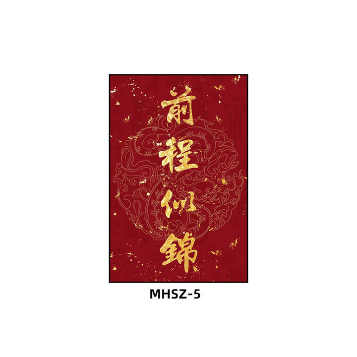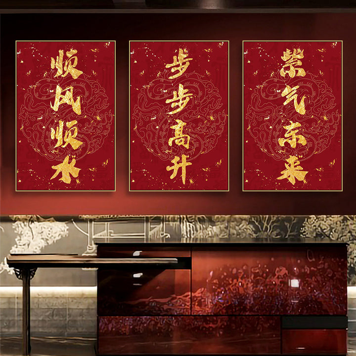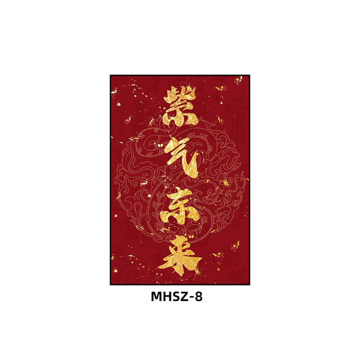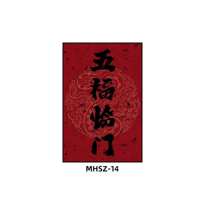 Wufu Linmen decorative painting new Chinese style red festive living room entrance tea room hanging painting Guochao calligraphy text mural