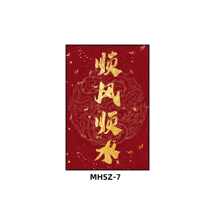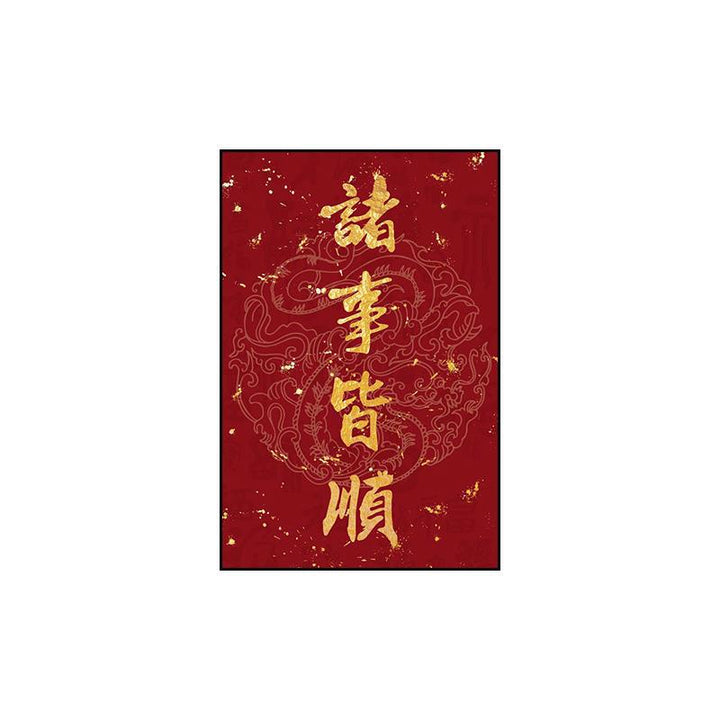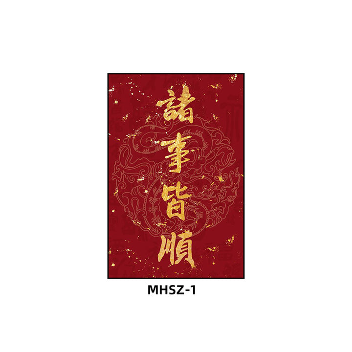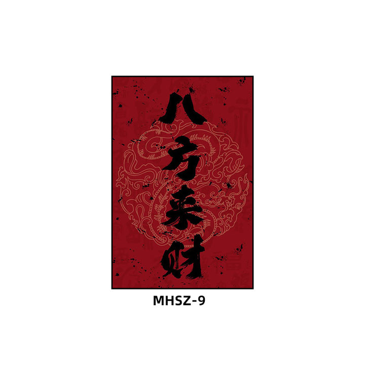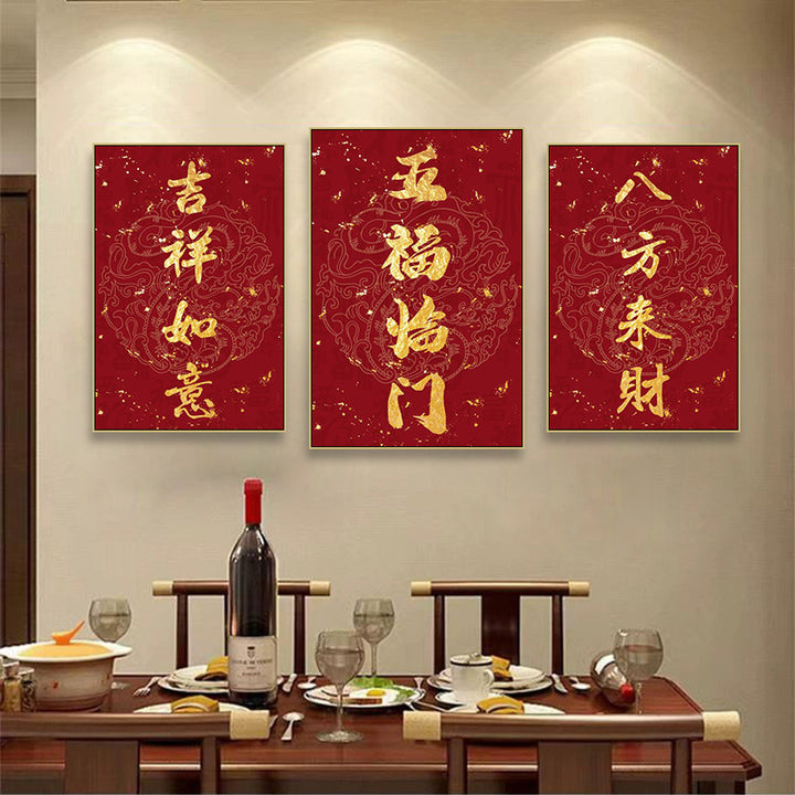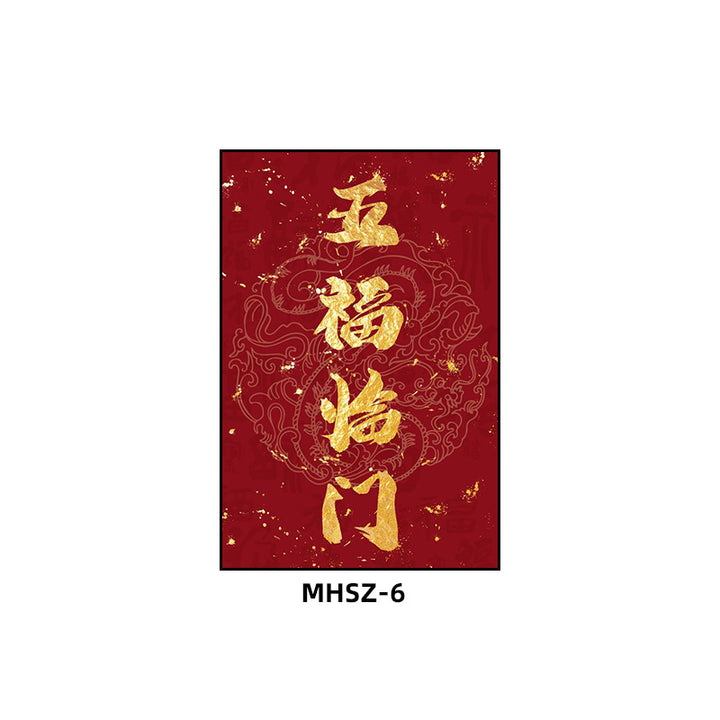 Wufu Linmen decorative painting new Chinese style red festive living room entrance tea room hanging painting Guochao calligraphy text mural