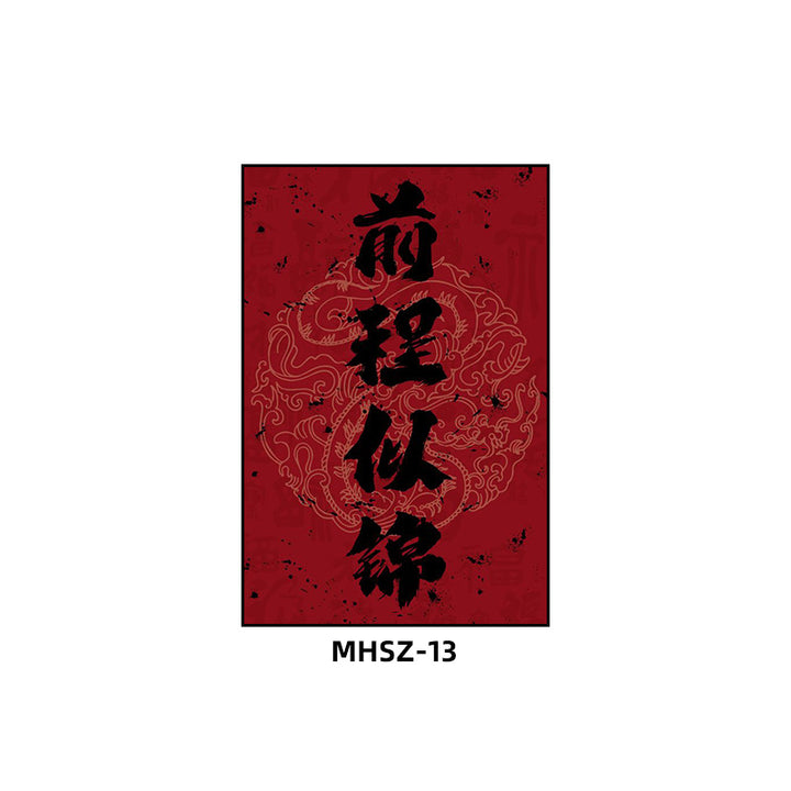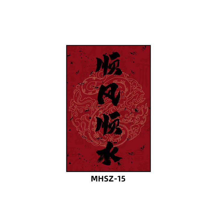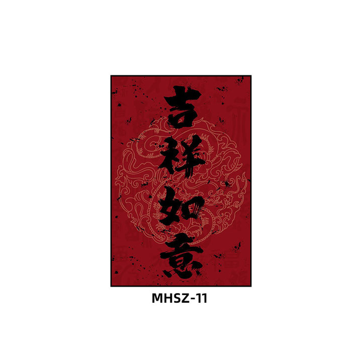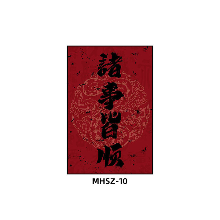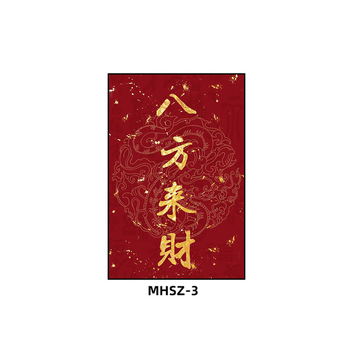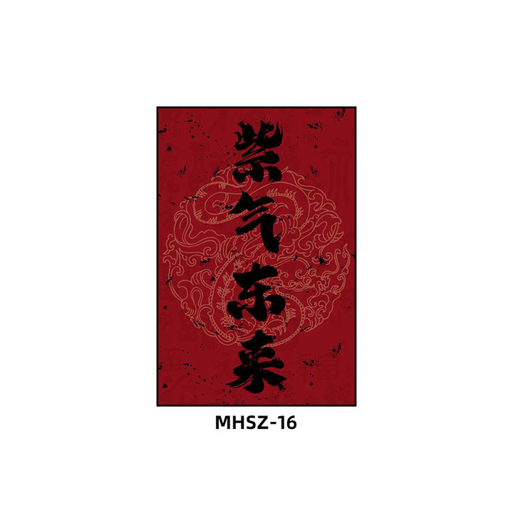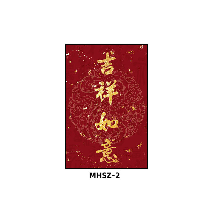Wufu Linmen decorative painting new Chinese style red festive living room entrance tea room hanging painting Guochao calligraphy text mural