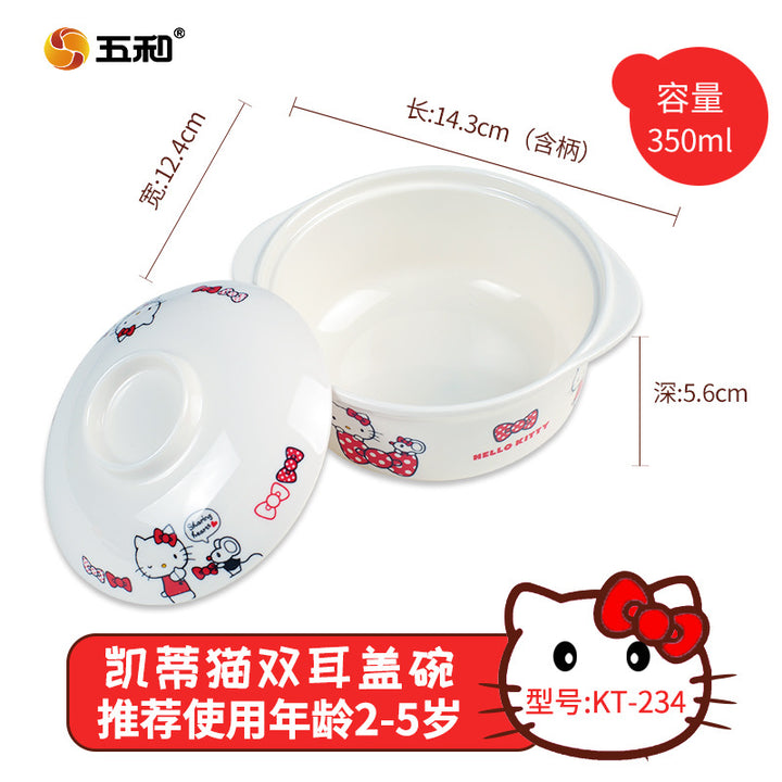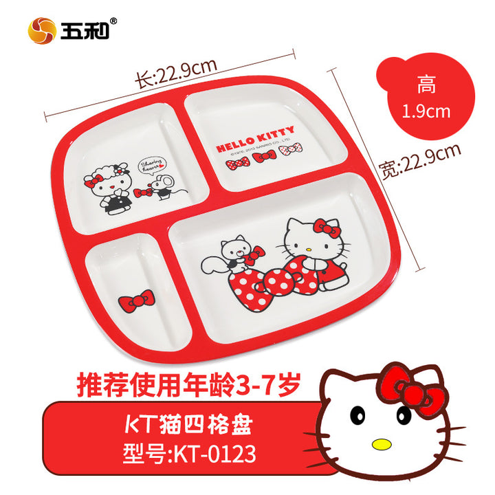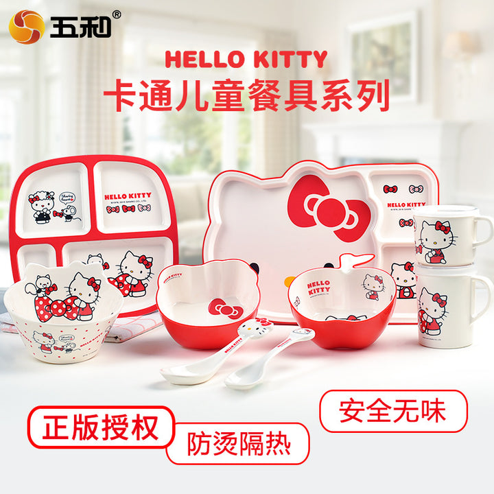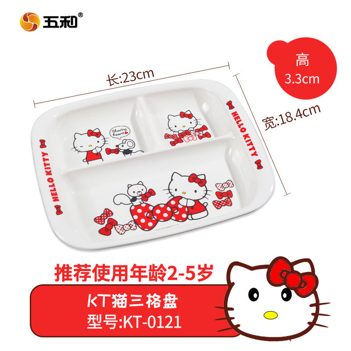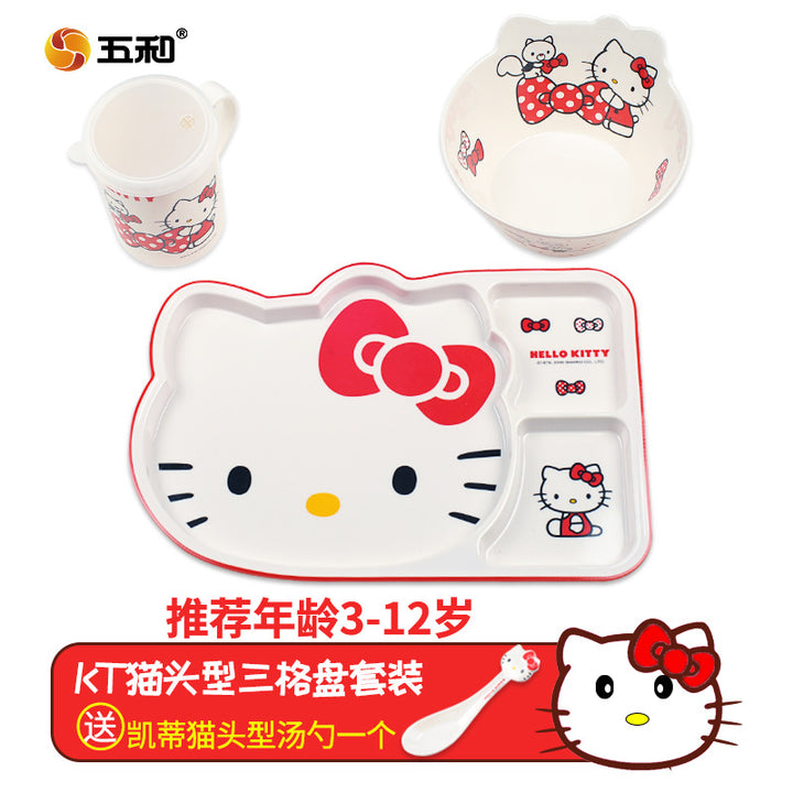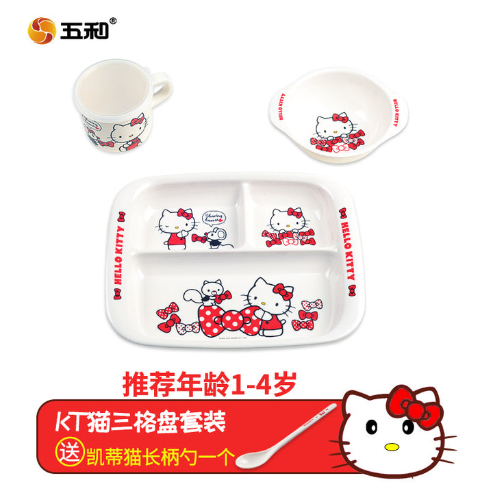 Wuhe children's complementary food bowl tableware household cartoon cute spoon kindergarten baby grid plate bowl spoon set