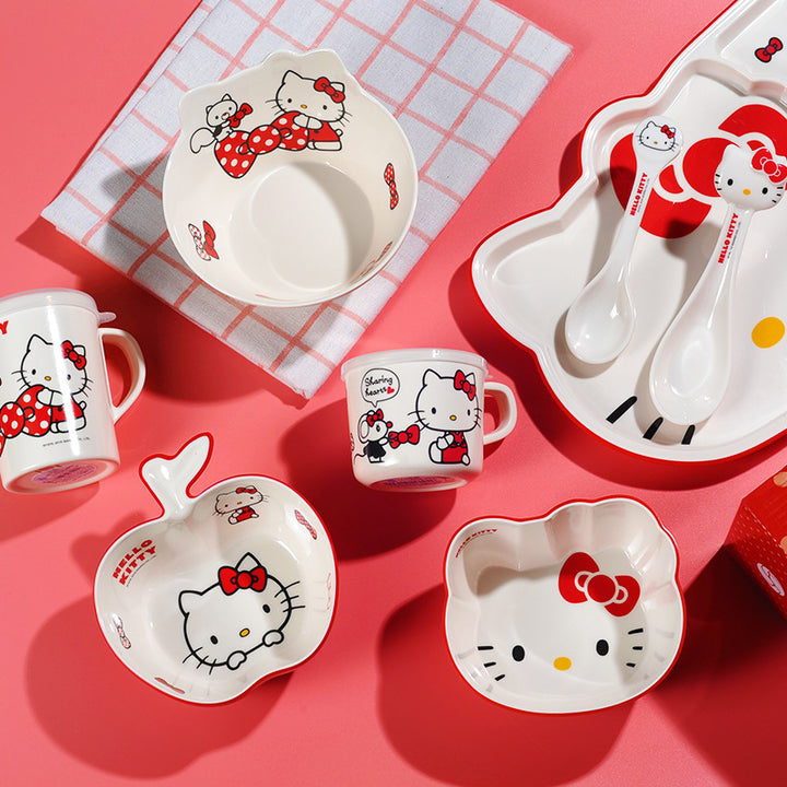 Red KT cat three grid plate KT-0121, Red KT cat four grid plate KT-0123, Red KT cat head disc KT-195, Red KT Cat Disc KT-516, Red KT Cat Apple Bowl KT-S192, Red KT Cat Deep Bowl KT-545, Red KT Cat Single Handle Apple Bowl KT-342, Red KT Cat Grass Berry Bowl KT-S193, Red KT Cat Orange Bowl KT-563, Red KT Cat Binaural Bowl KT-H202, Red KT cat head plate KT-S198, Red KT cat binaural cover bowl KT-H234, Red KT cat head bowl KT-S169, Red KT Small Water Cup KT-13, Red KT Medium Water Cup KT-36, Red KT three-grid plate + binaural bowl + small cup (free long-handled spoon), Red KT four-grid plate + apple bowl + medium cup (free spoon), Red KT head plate + deep bowl + medium cup (free spoon), Red KT cat head plate + cat head bowl + medium cup (free medium spoon) |