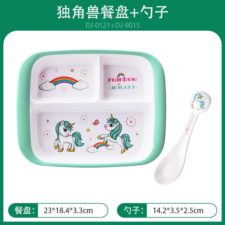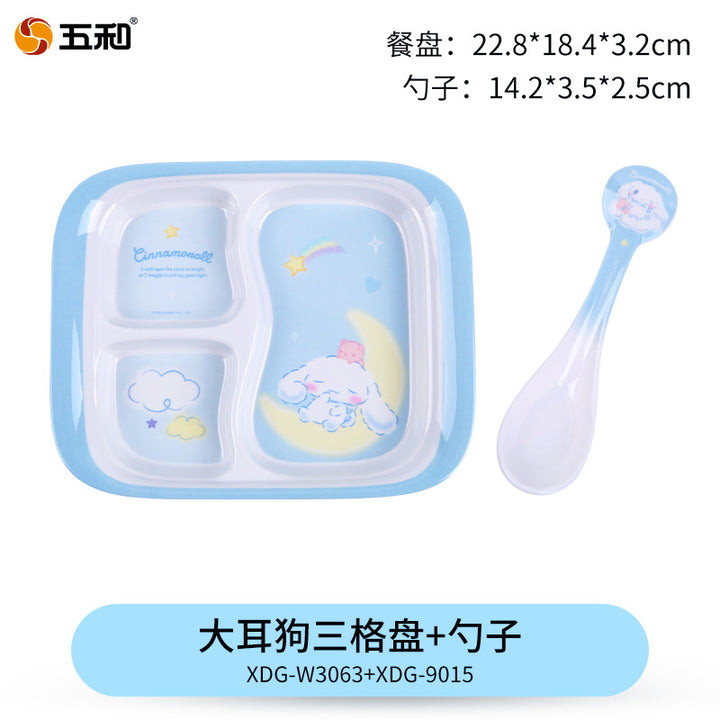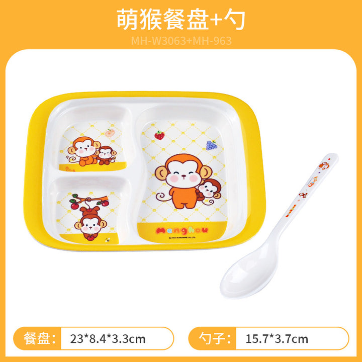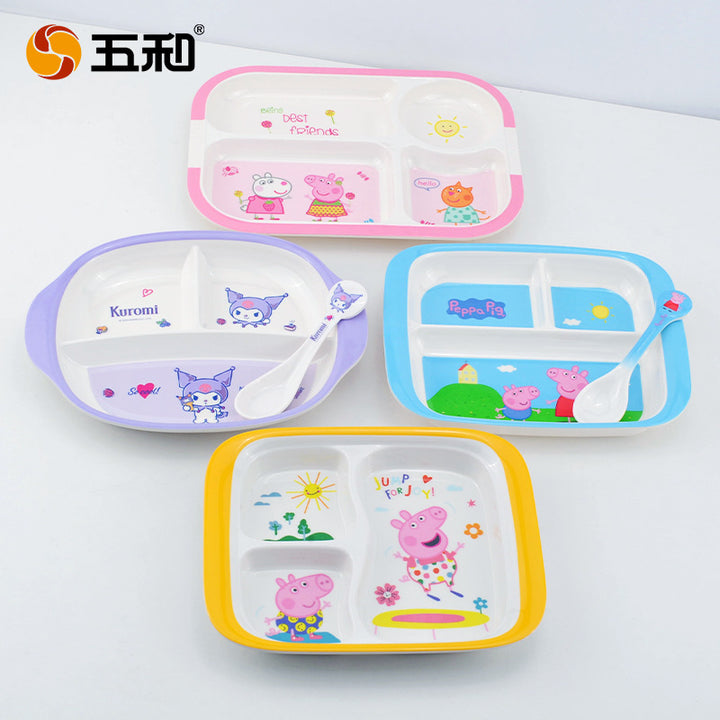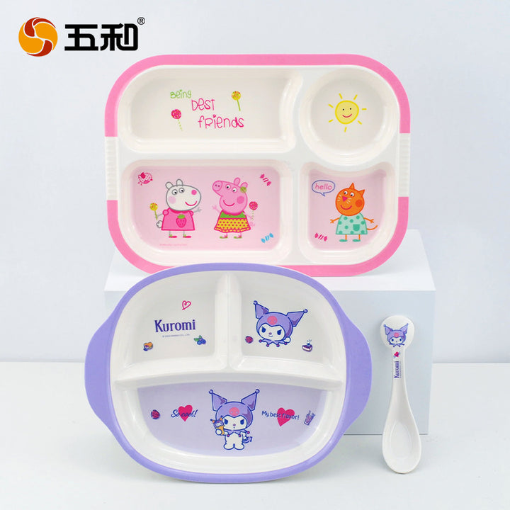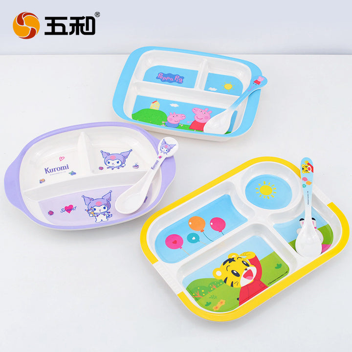 Wuhe children's tableware baby melamine plate high-value grid plate cartoon plate cute plate household modeling plate