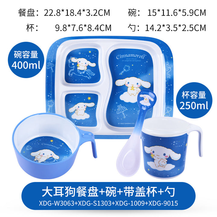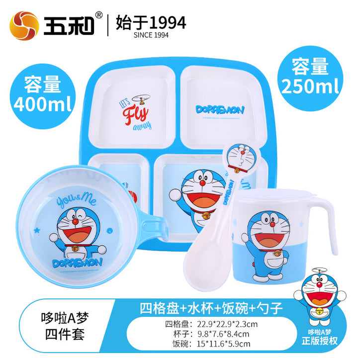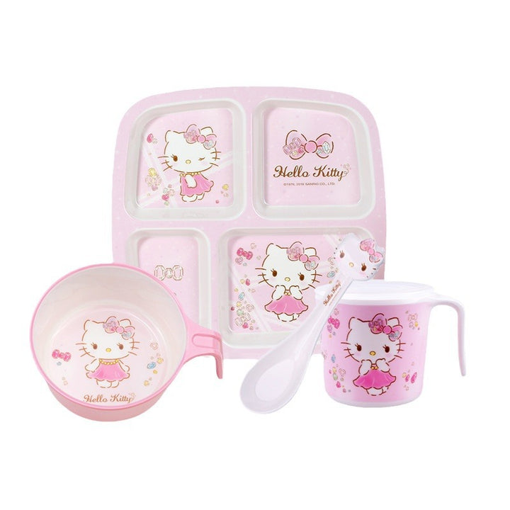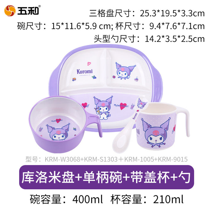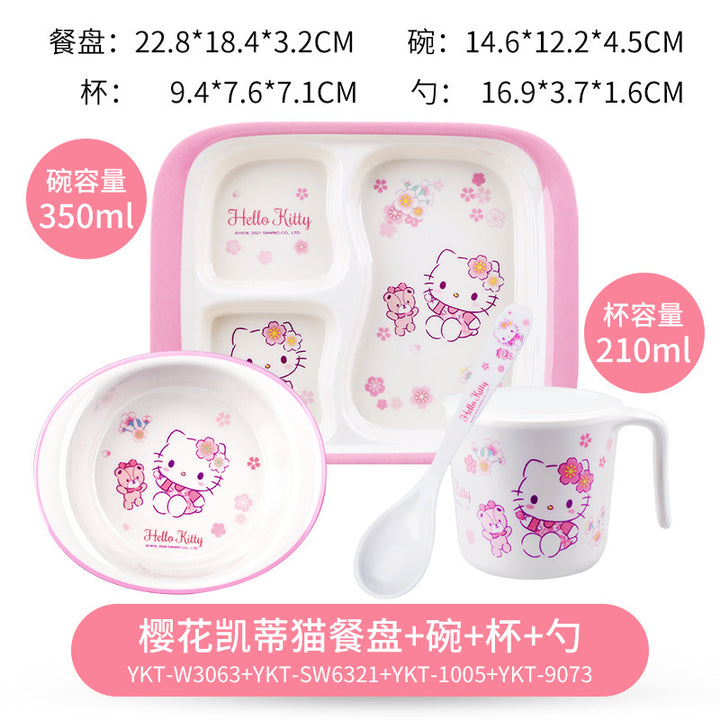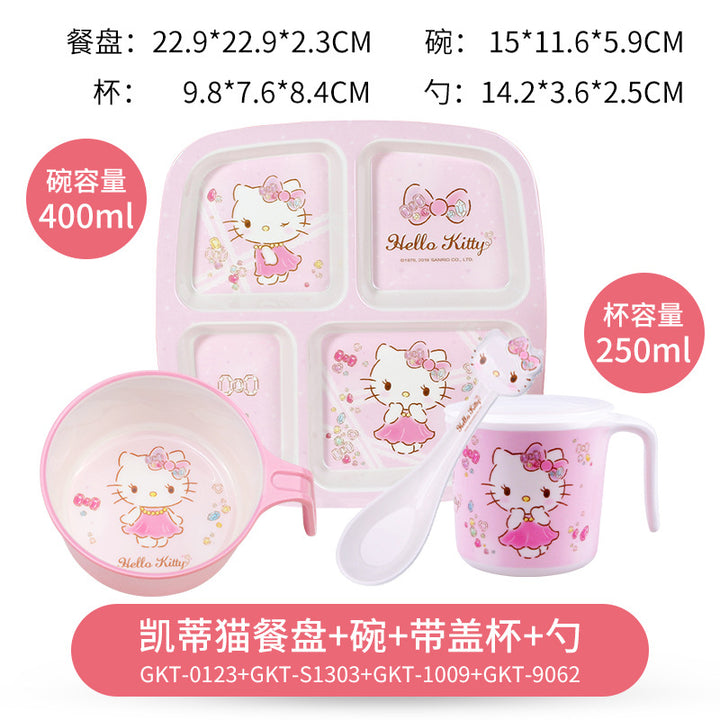 Wuhe children's tableware set grid plate baby water cup baby bowl spoon household cartoon Hello Kitty Kulomie