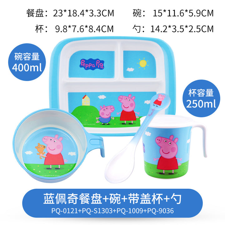 Pink cute rabbit four-piece set (bowls, cups and spoons), Little Yellow Duck four-piece set (bowls, cups and spoons), Pink KT cat four-piece set (bowls, cups and spoons), Milk dragon four-piece set (bowls, cups and spoons), Peppa Pig four-piece set (dishes, cups and spoons), Big-eared dog four-piece set (bowls, cups and spoons), Doraemon four-piece set (bowls, cups and spoons), Sakura KT cat four-piece set (dishes, cups and spoons), Kulomie four-piece set (bowls, cups and spoons) |