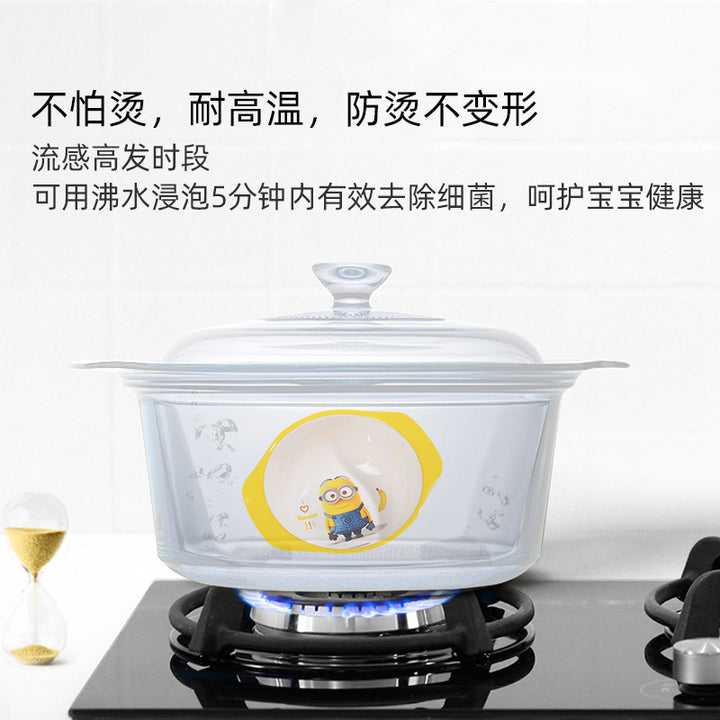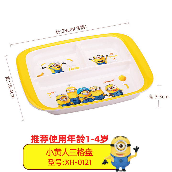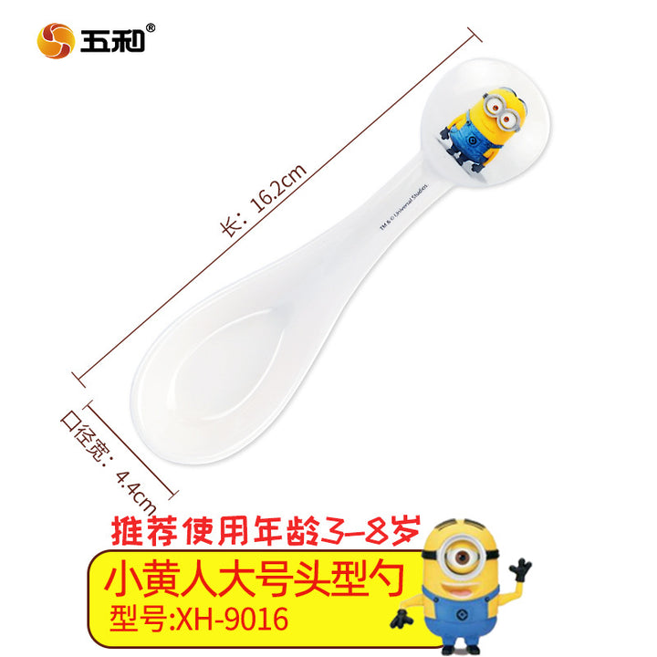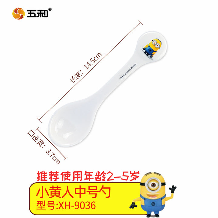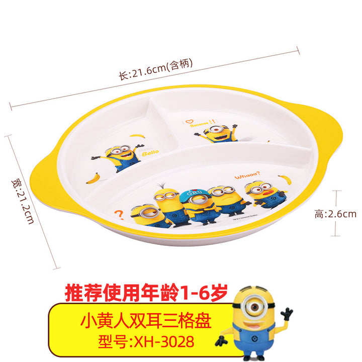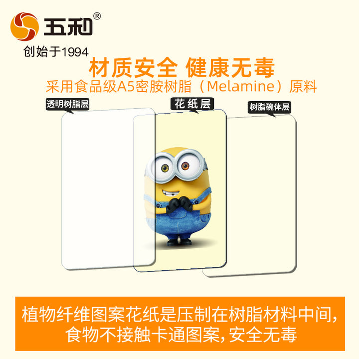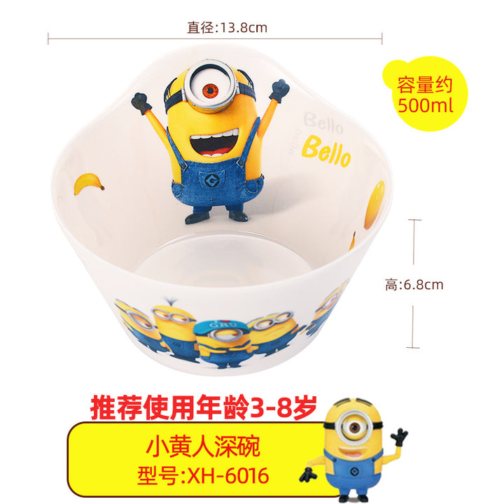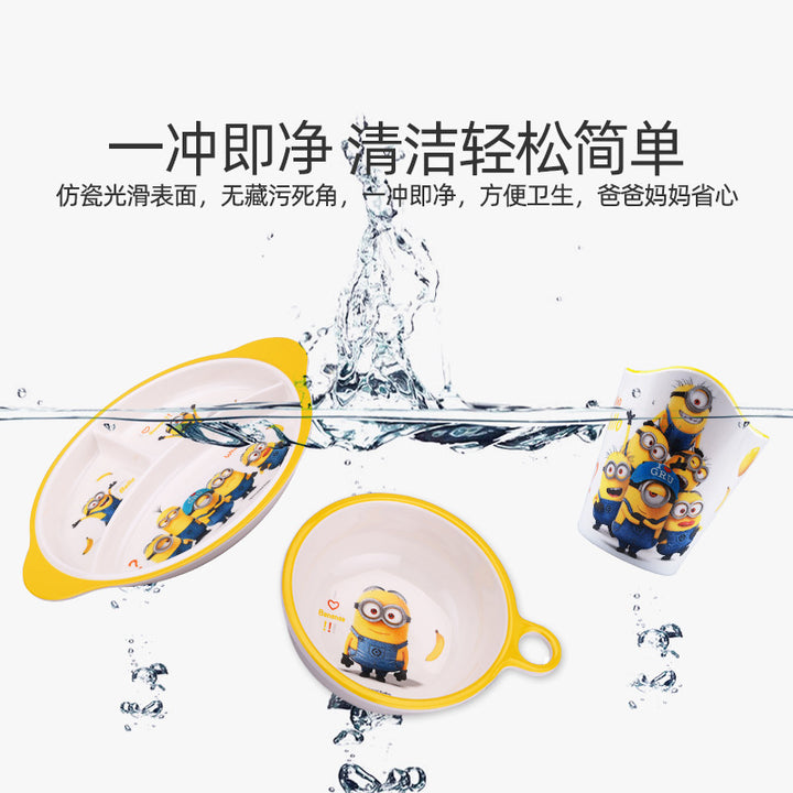 Wuhe complementary food bowl cartoon children's bowl household handle bowl cute minions dinner plate rice bowl spoon plate tableware wholesale
