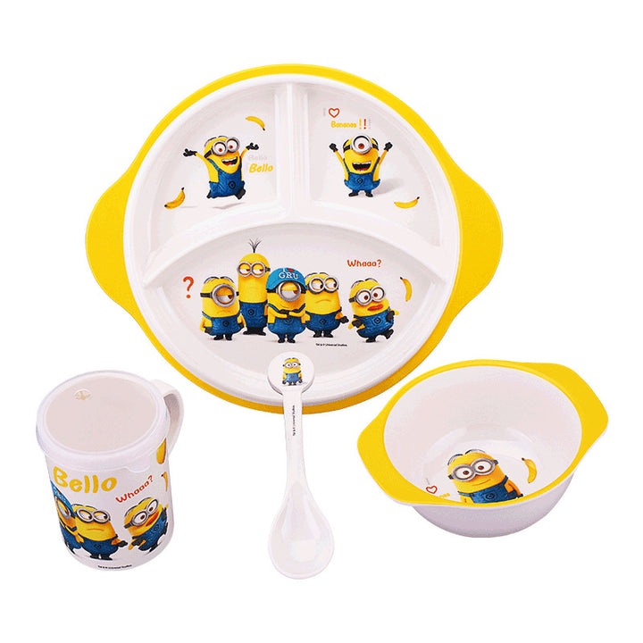 Minion head spoon, Minion spoon, Minions medium spoon, Minions deep bowl, Minions Small Cup, Minions Medium Cup, Minions three-grid plate, Minions binaural three-grid plate |