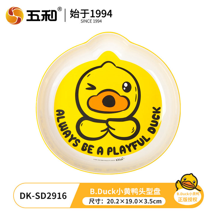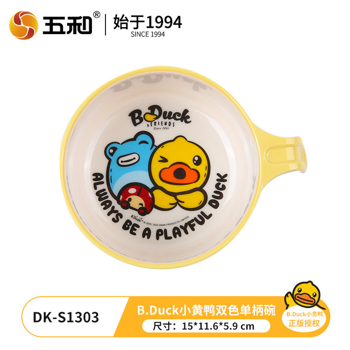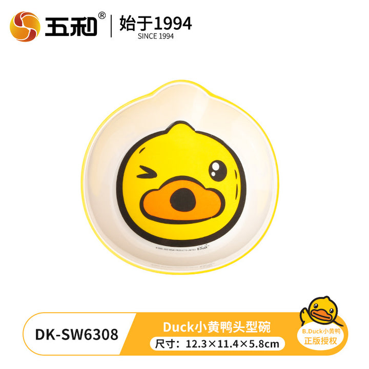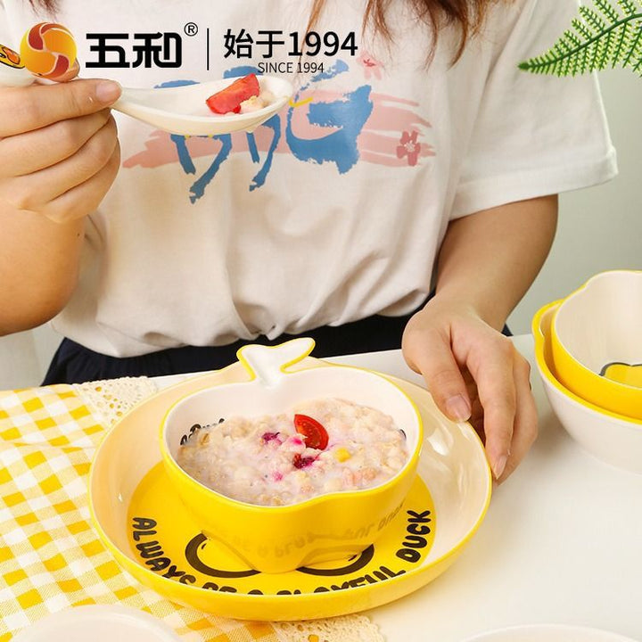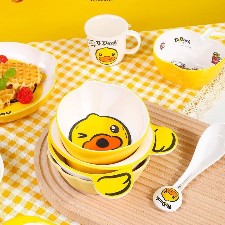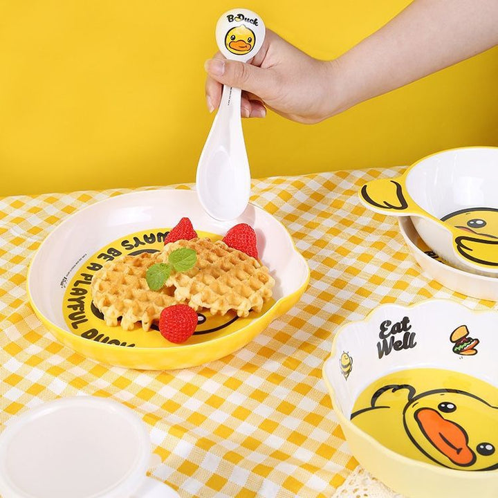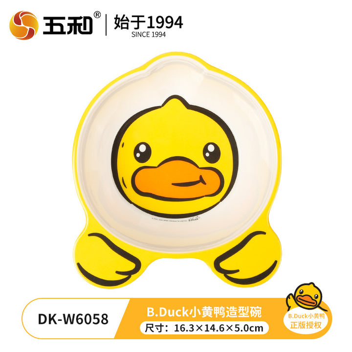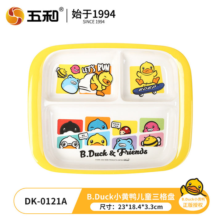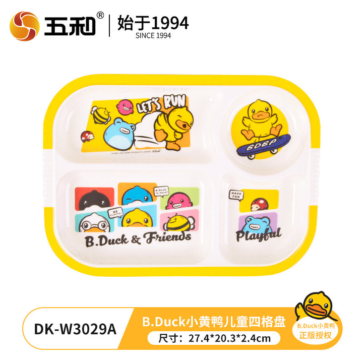 Wuhe Little Yellow Duck Children's Tableware Bowl and Spoon Set Food Grade Anti-scalding and Anti-drop Baby Special Cartoon Grid Plate