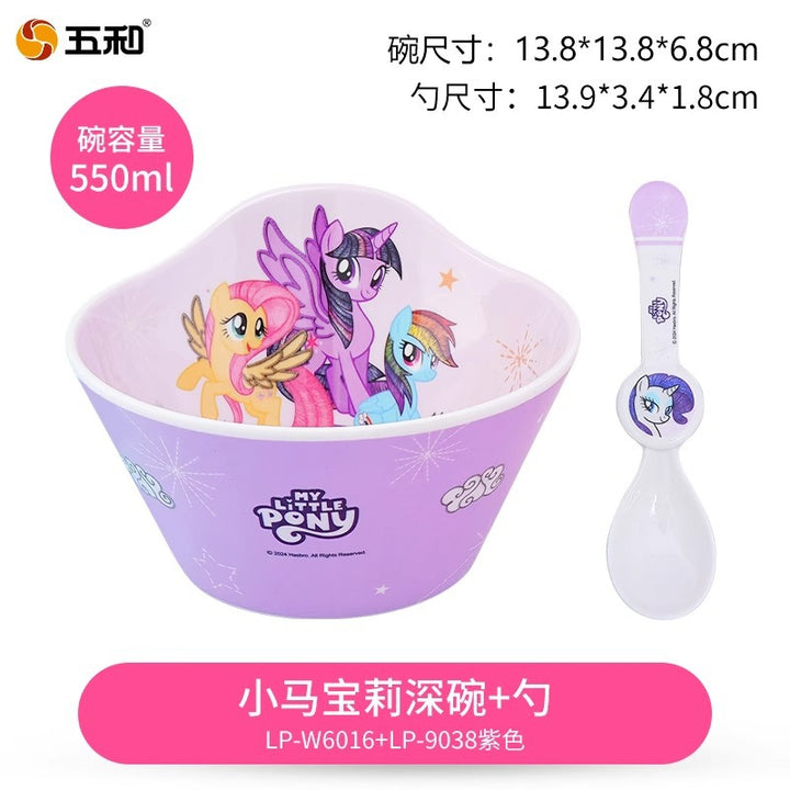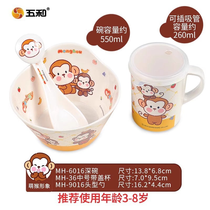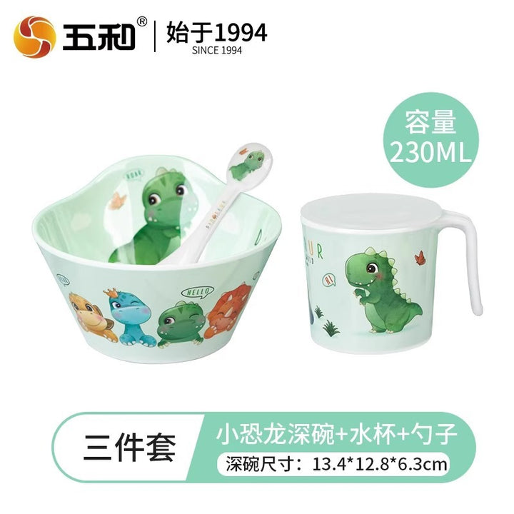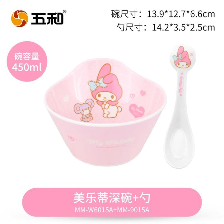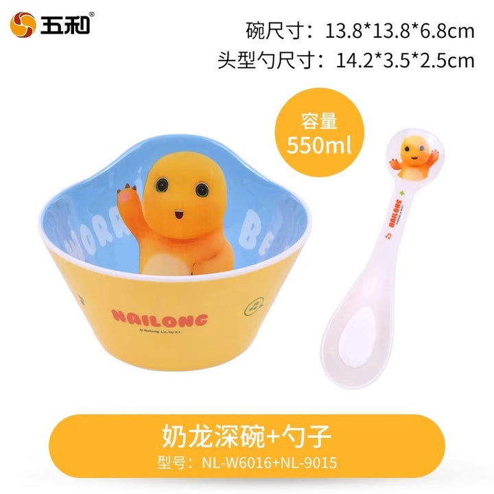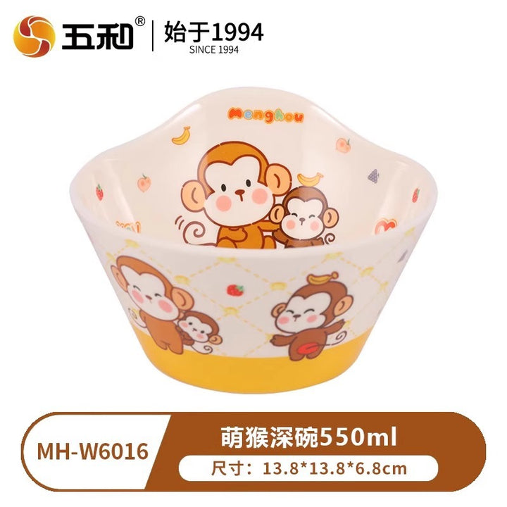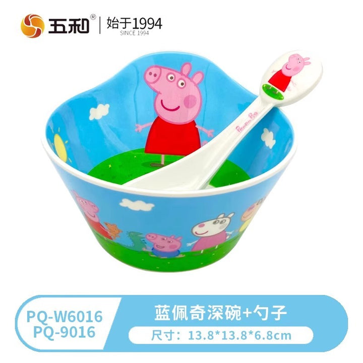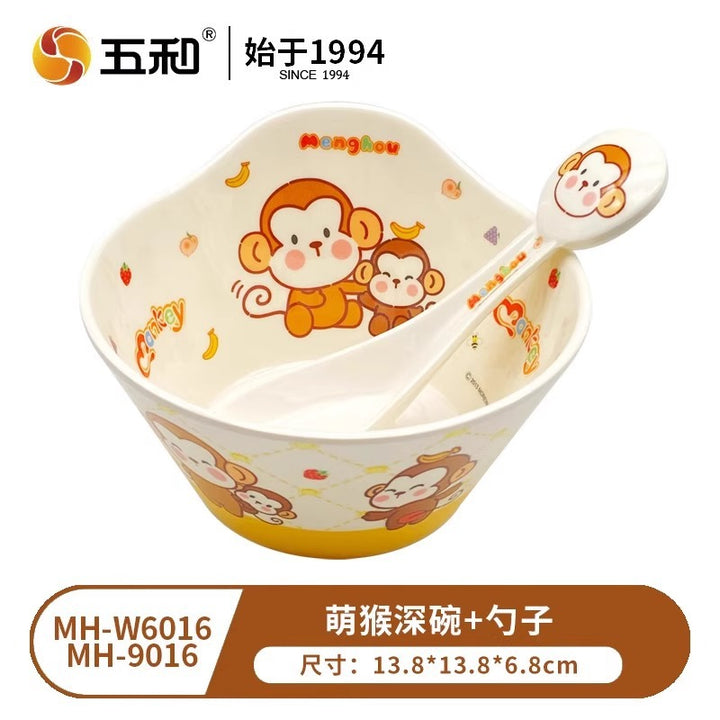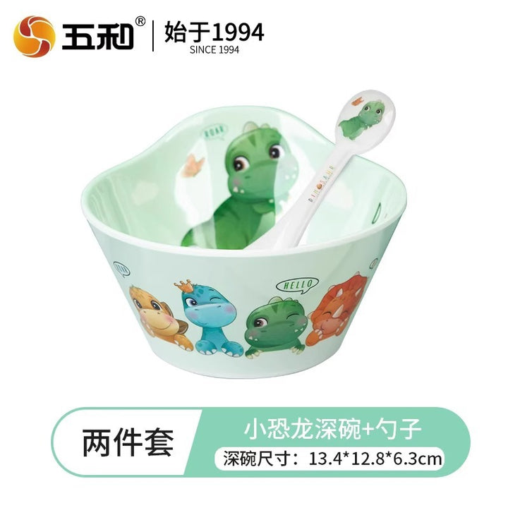 Wuhe melamine soup bowl household anti-scalding and anti-drop baby eating bowl cartoon children's tableware imitation porcelain bowl spoon
