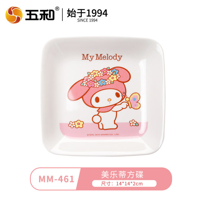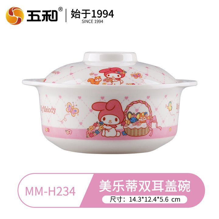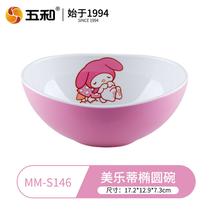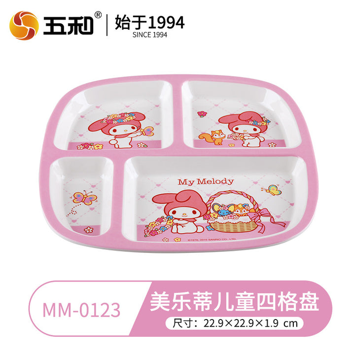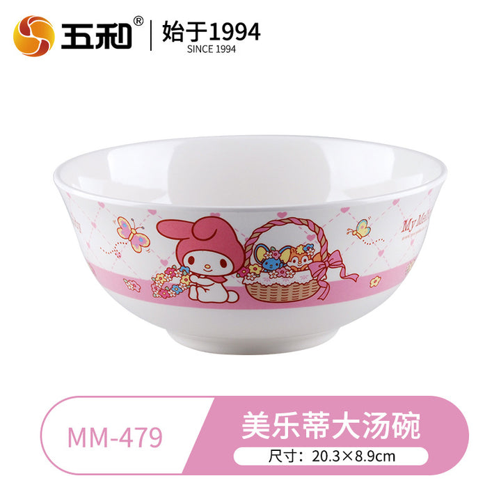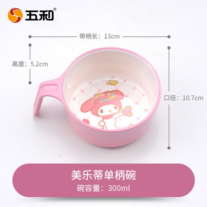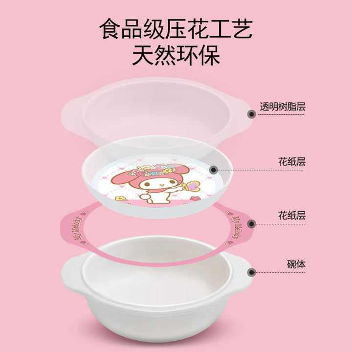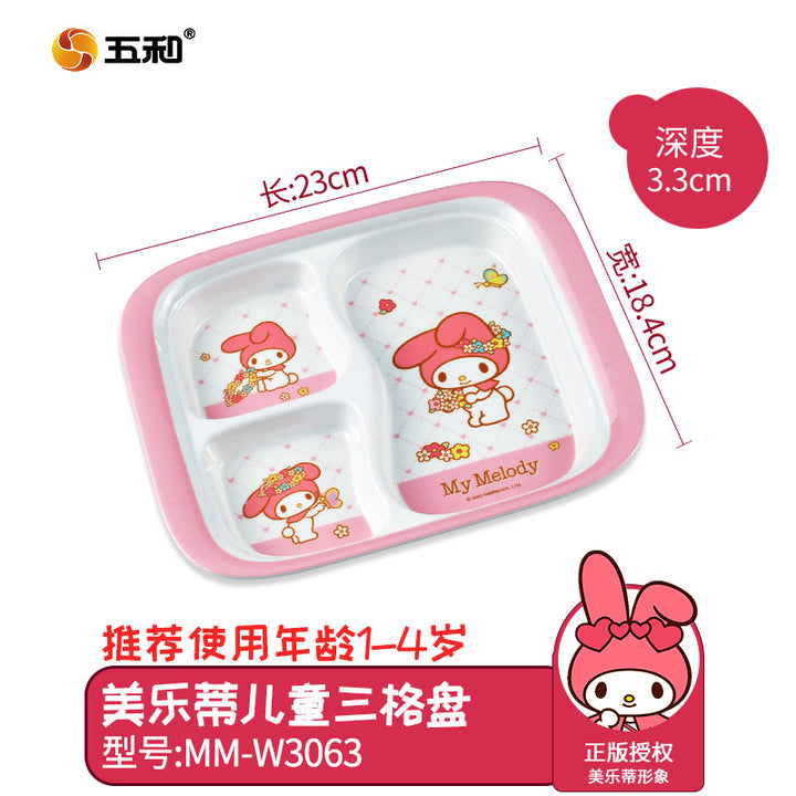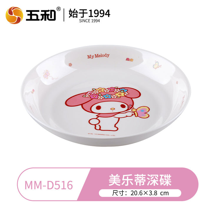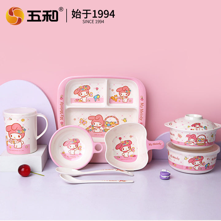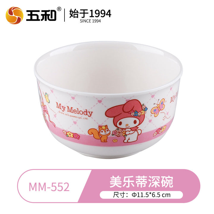 Wuhe Melody children's tableware for girls Cute cartoon baby food supplement bowl Melamine anti-scalding water cup Plate