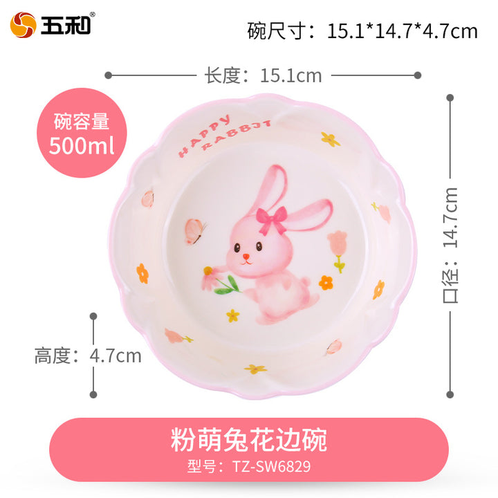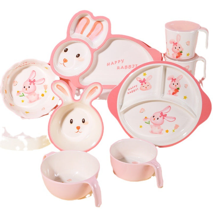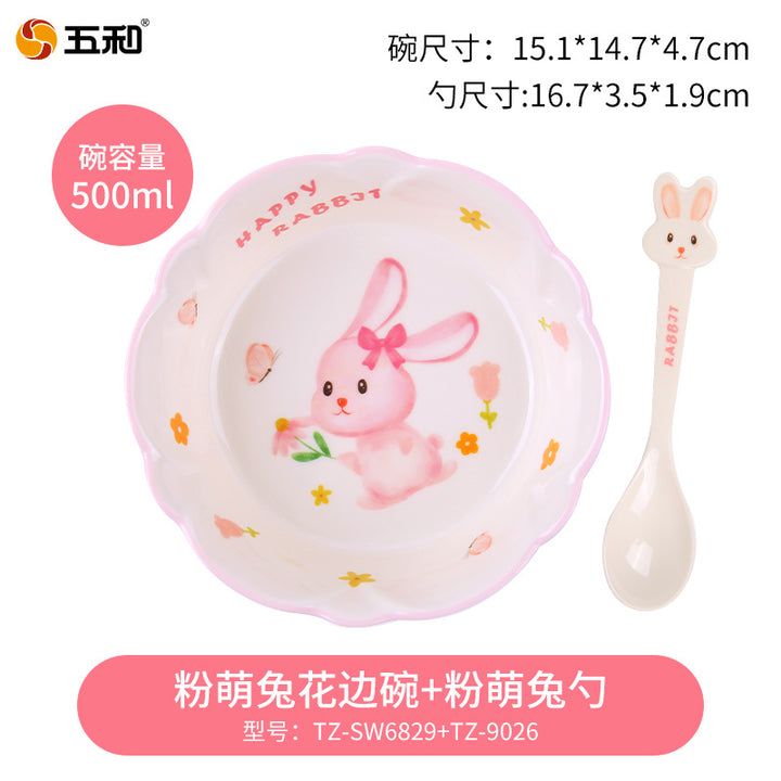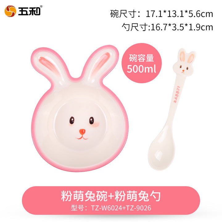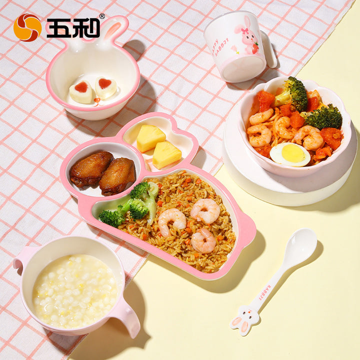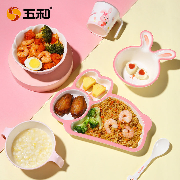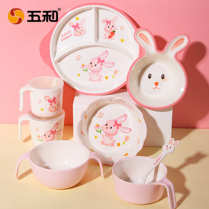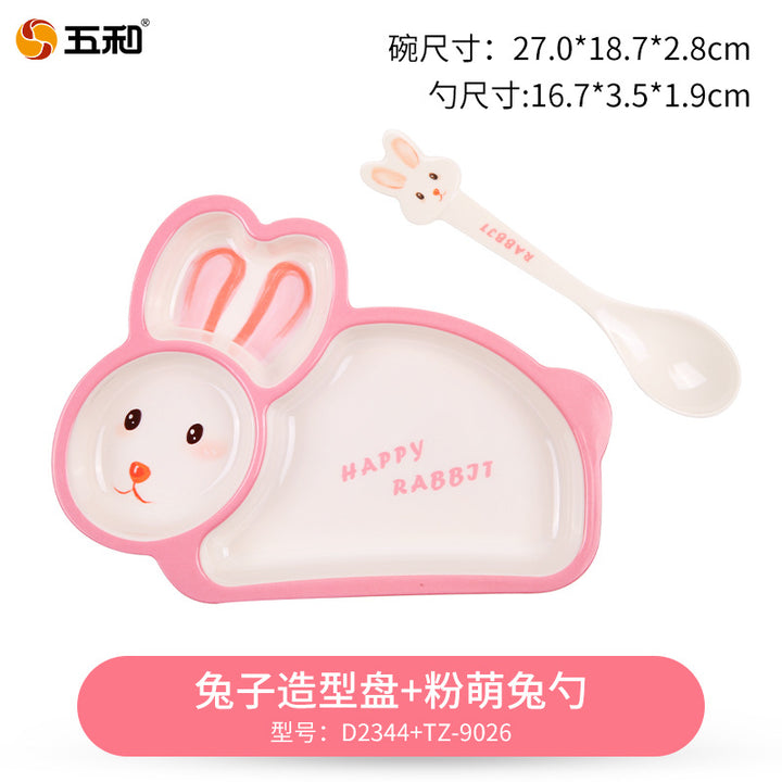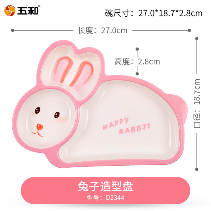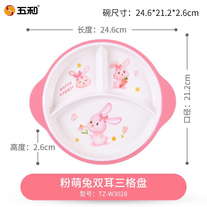 Wuhe Pink Moe Rabbit Children's Tableware Girl New Rabbit Supplementary Food Bowl Baby Bowl Grid Plate Cute Cartoon