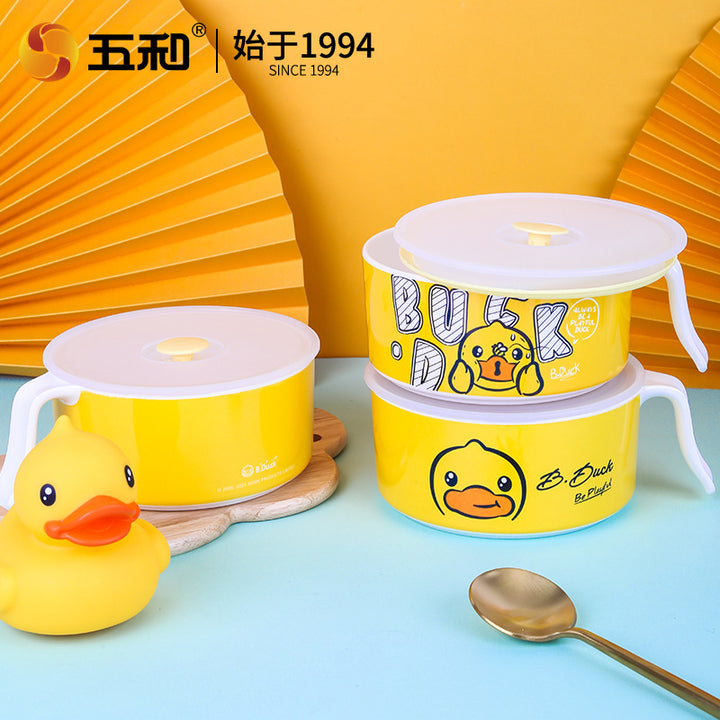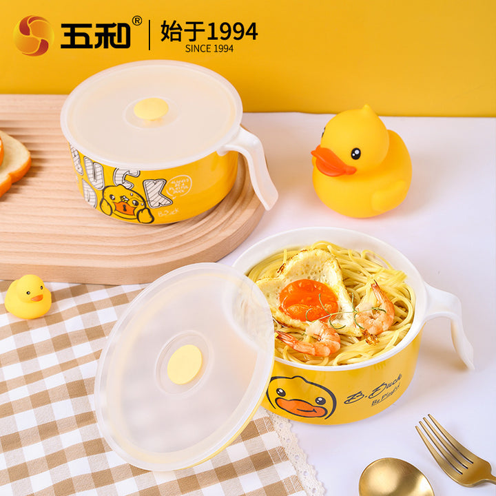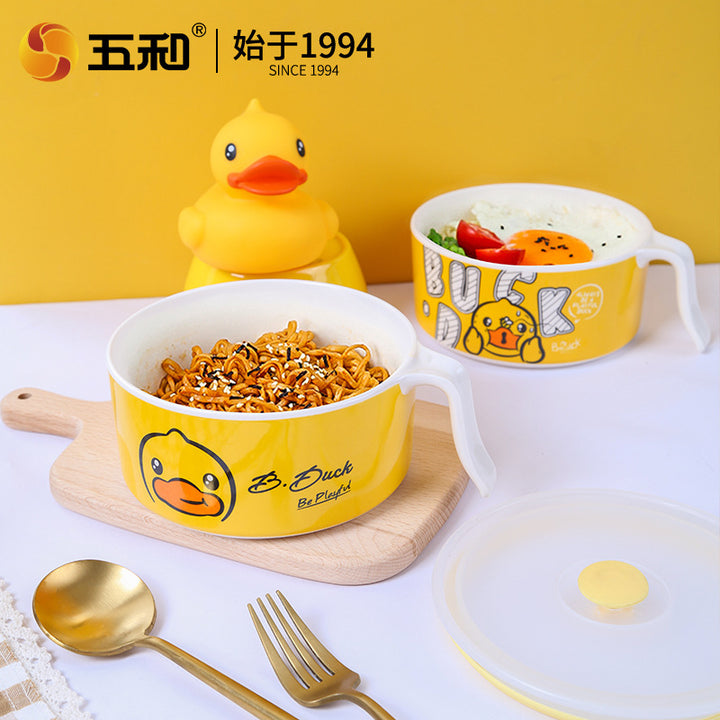 Wuhe Small Yellow Duck Instant Noodle Bowl Fresh-keeping Bowl Melamine Student with Lunch Box...