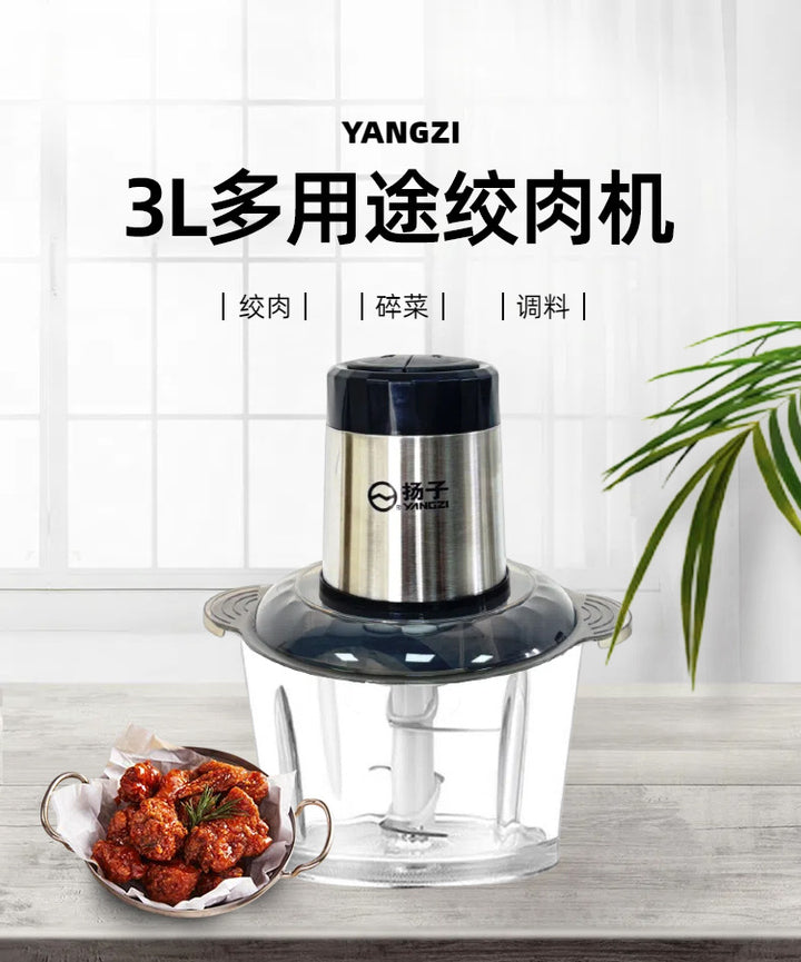 X Yangzi 3-liter glass meat grinder, ground vegetables and noodles, large-capacity meat grind...