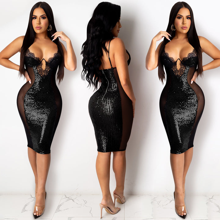 X3899 autumn and winter European and American new women's clothing nightclub sexy suspender dress sequined lace