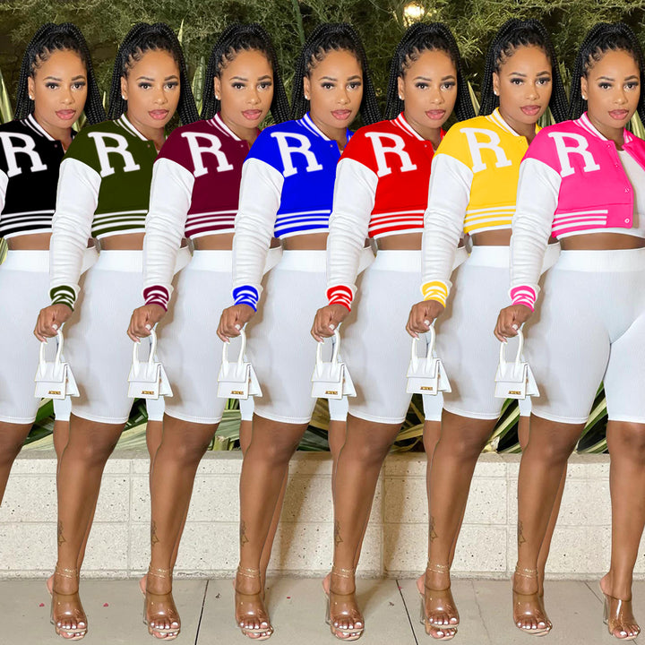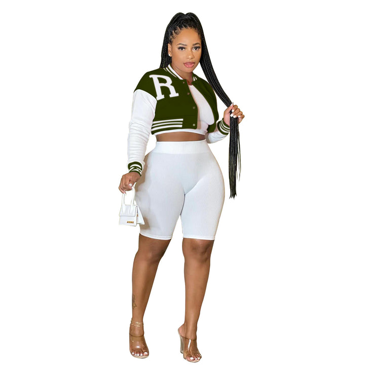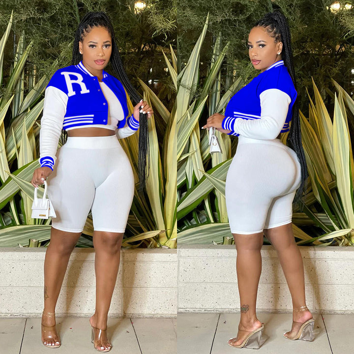 X6001 Cross-border European and American fashion women's clothing long-sleeved open-navel jacket lined with trousers three-piece set