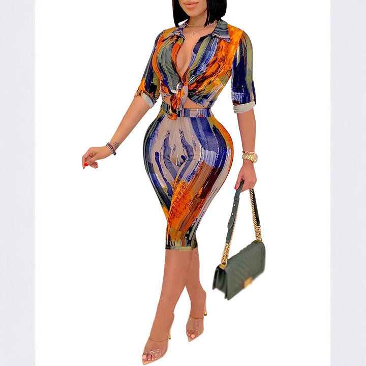 X6010 wish European and American new fashion casual printing V-neck short-sleeved trousers two-piece set for women