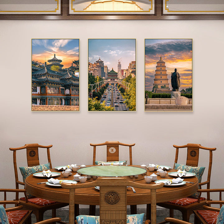 Xi'an Hanging Paintings Shaanxi Noodle House Restaurant Hotel Chang'an Ancient City Decorative Painting City Scenic Architecture Big Wild Goose Pag...