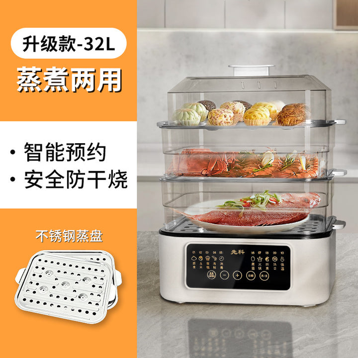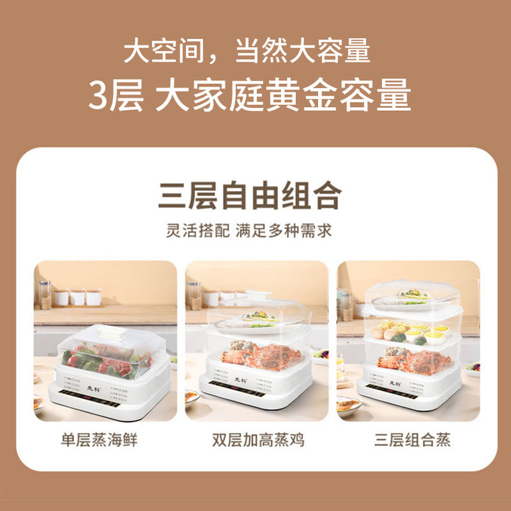 Xianke electric steamer household three-layer steamer multi-functional cooking integrated breakfast machine automatic power-off steam pot manufacturer