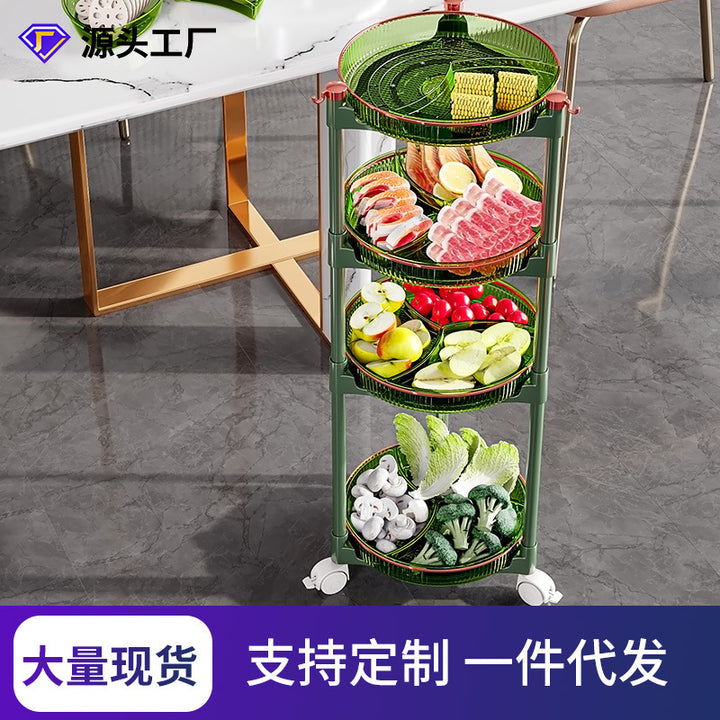 Xinle, kitchen multi-layer side dish 360 ° rotatable multi-functional hot pot plate, cart with pulley rack