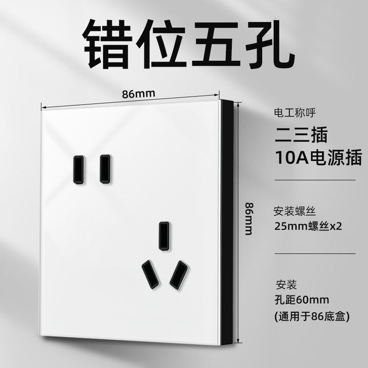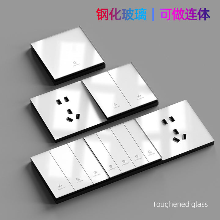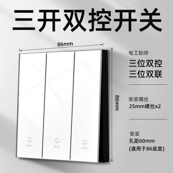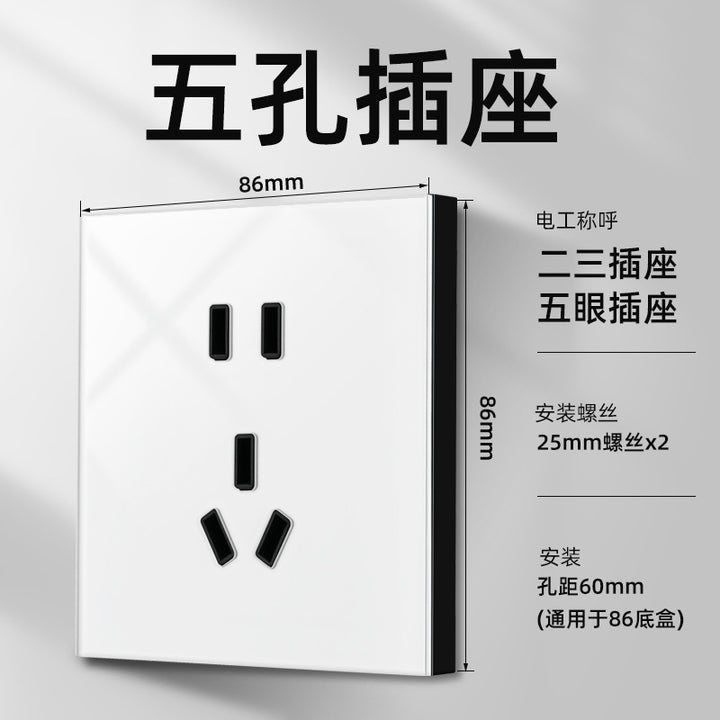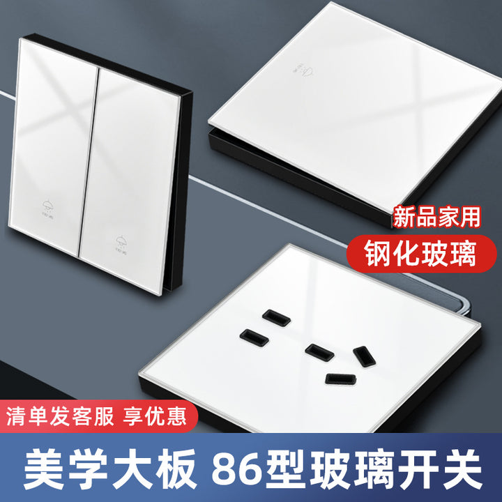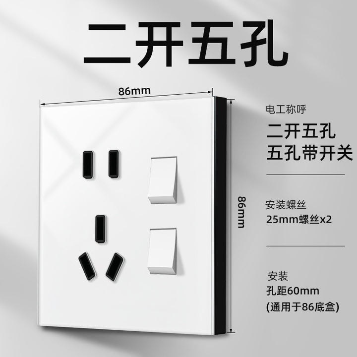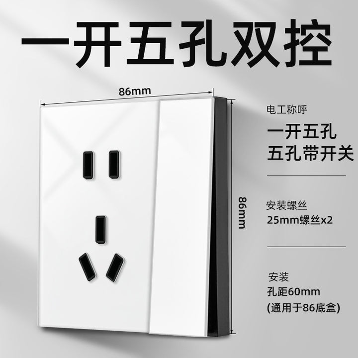Xuanmeng switch socket white tempered glass mirror wall concealed double control 86 type poro...