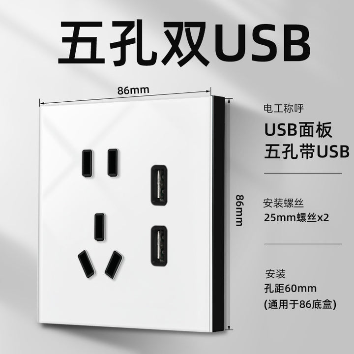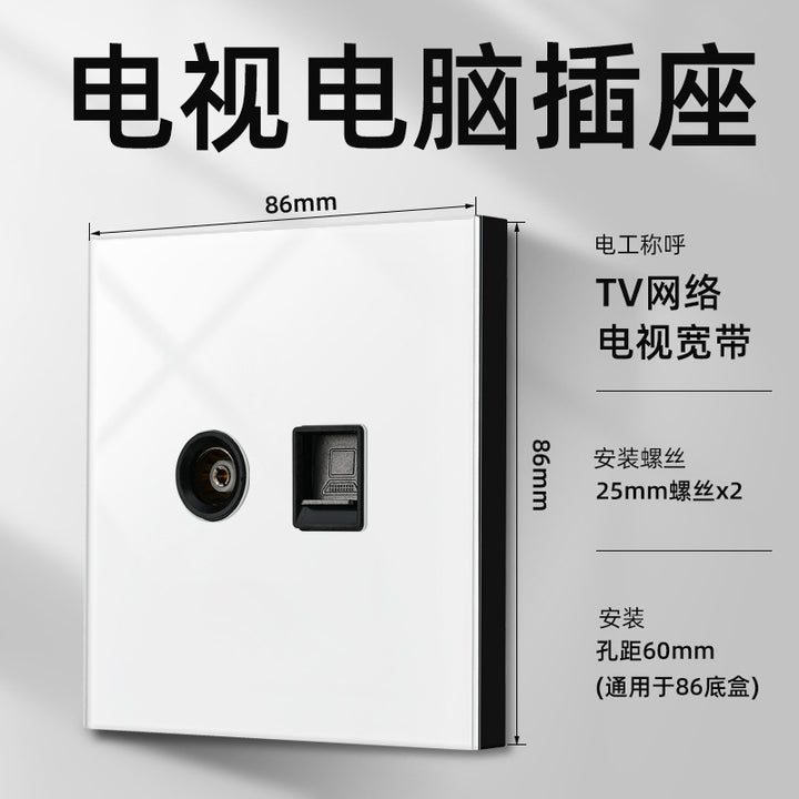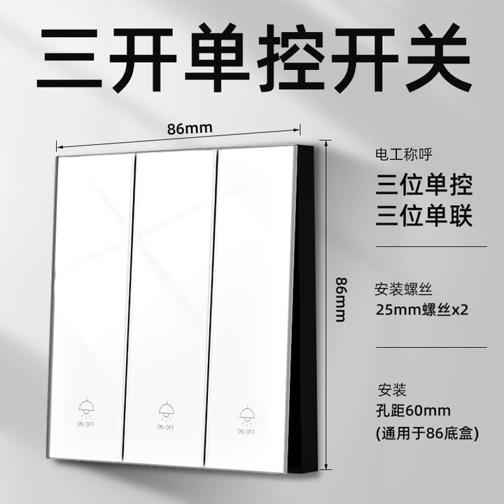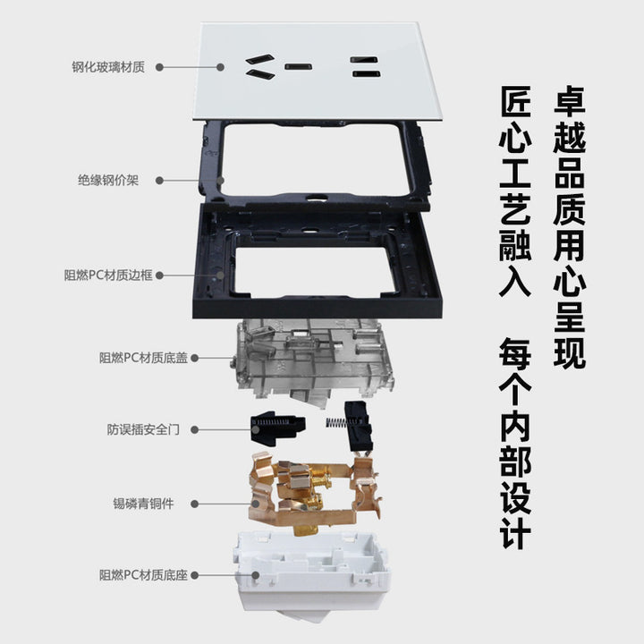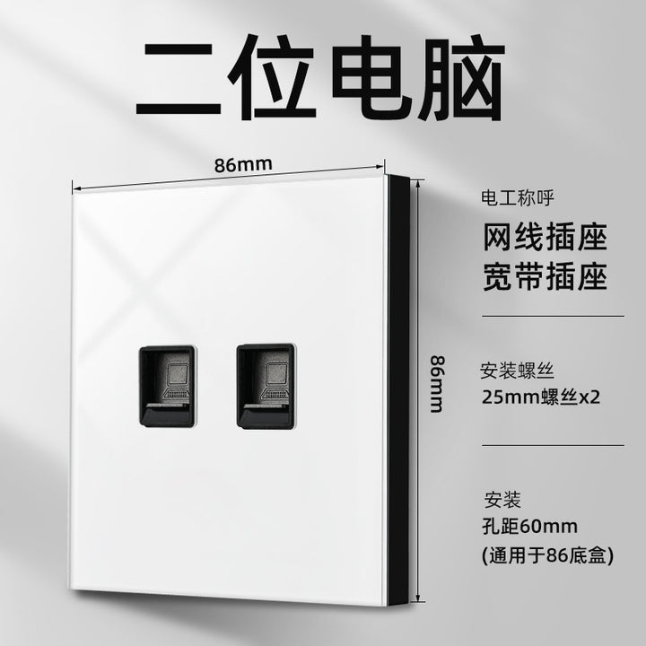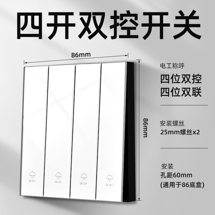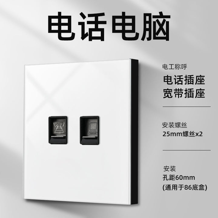Xuanmeng switch socket white tempered glass mirror wall concealed double control 86 type poro...