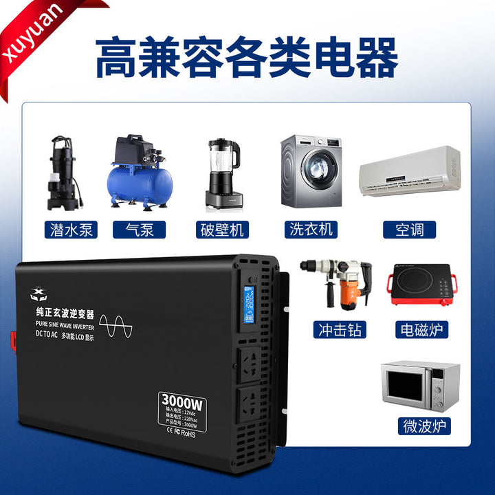 Pure sine wave 12v to 220V 300W, Pure sine wave 12v to 220V 600W, 纯正弦波 12v转220V 1000W, 纯正弦波 12v转220V 1500W, 纯正弦波 12v转220V 2000W, 纯正弦波 12v转220V 3000W, 纯正弦波 12v转220V 4000W, 纯正弦波 12v转220V 5000W |