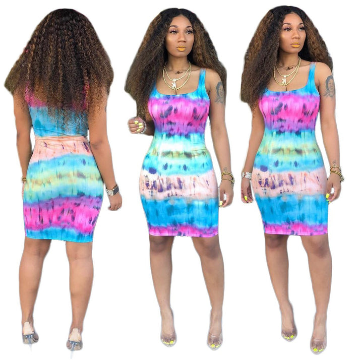Y5111 wishes Europe and the United States summer new women's clothing positioning printing tie-dye suspender dress