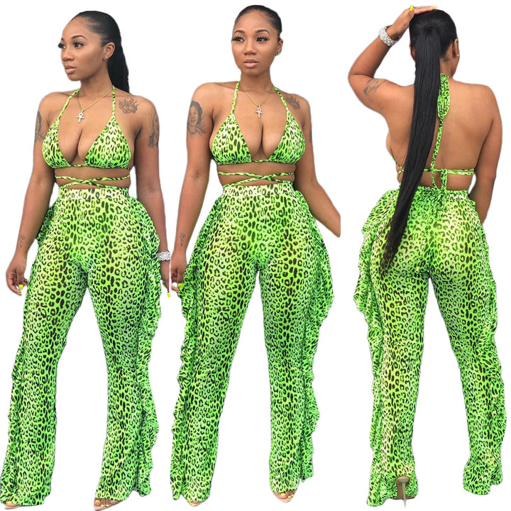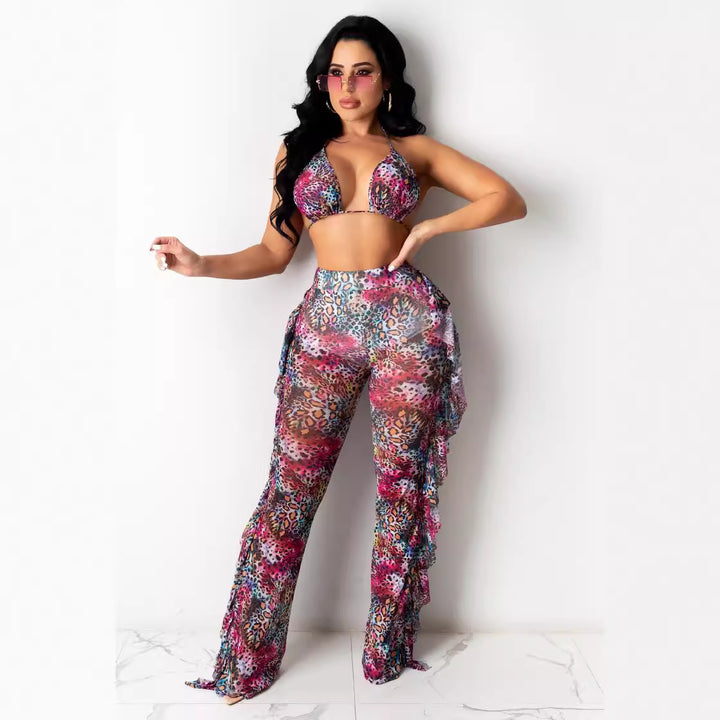 Y5117-3 European and American sexy women's clothing digital printing swimsuit mesh two-piece set (including underwear)